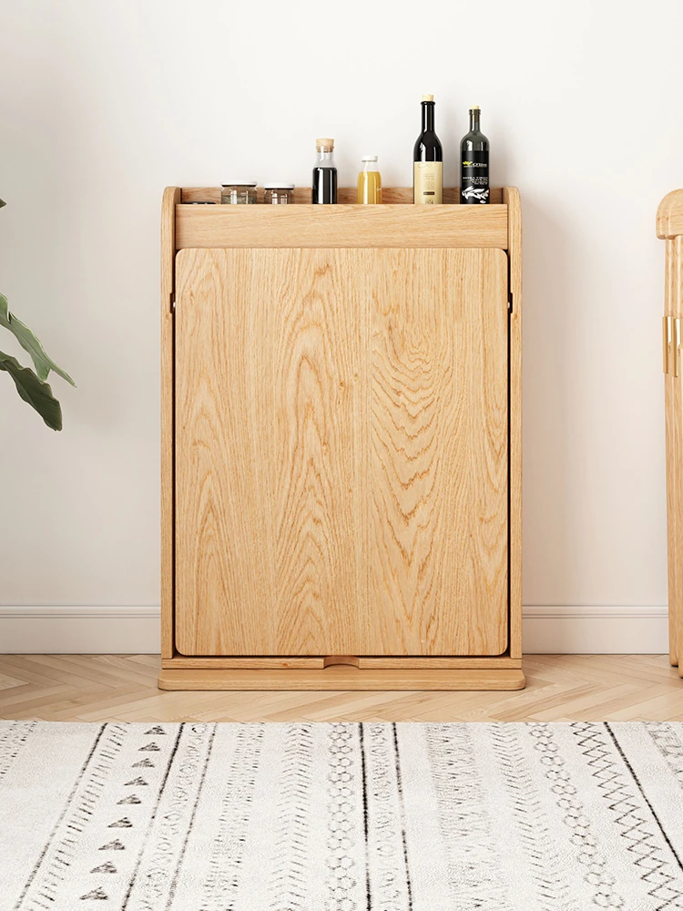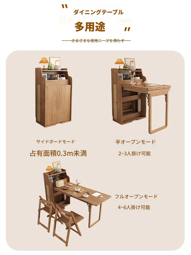 北欧風折りたたみ式ダイニングテーブル&キャビネット一体型 - 小型家庭に最適!天然木の脚、便利な収納機能付き、人気の伸縮式デザインでおしゃれな食卓を。