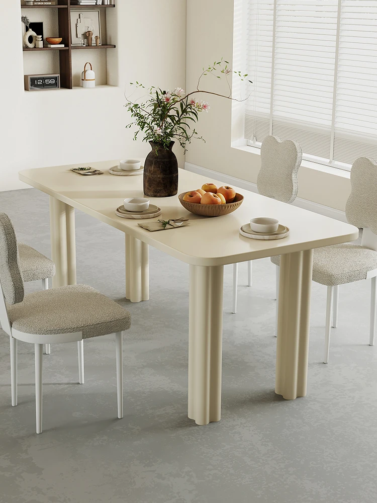 【おしゃれな暮らし】ユーズド無垢材ダイニングテーブル&チェアセット - フレンチクリームスタイル、ラグジュアリーでシンプルなモダンデザイン、耐久性抜群のリビングルーム用岩板、コンパクトで使いやすい
