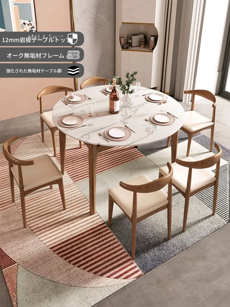 北欧風デザイン岩板ダイニングテーブルセット:コンパクトな空間にぴったり!モダンな木製ラウンドテーブル、伸縮折りたたみ可能&IH対応で実用性抜群。