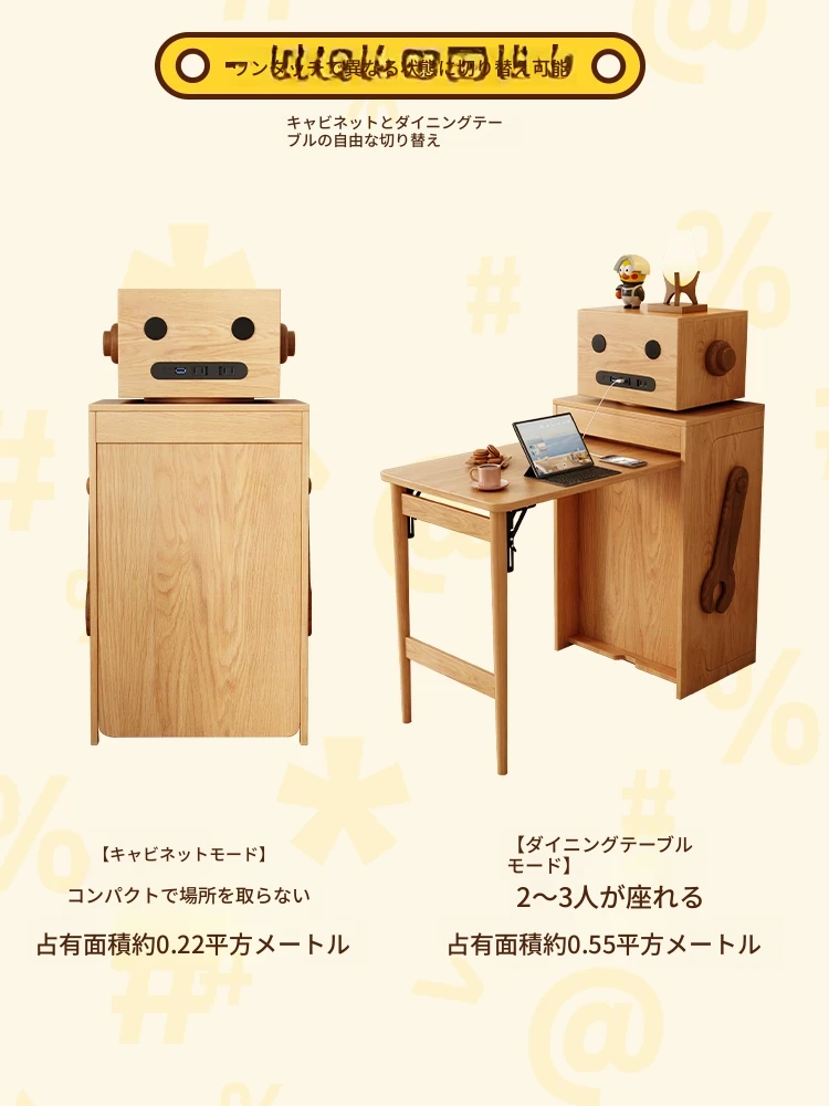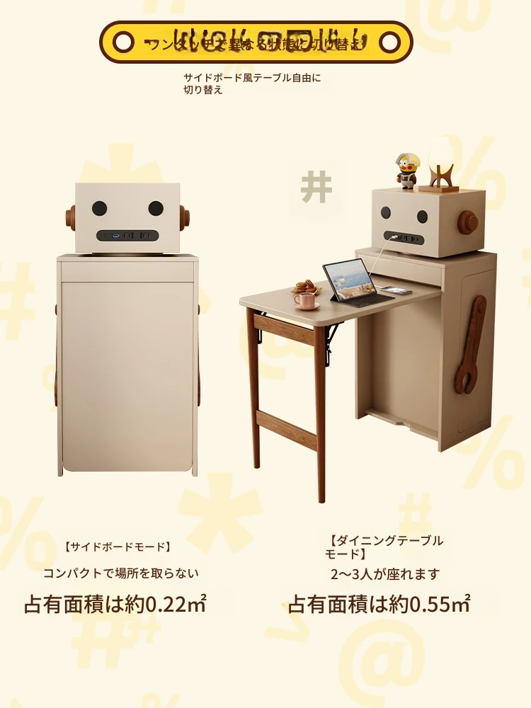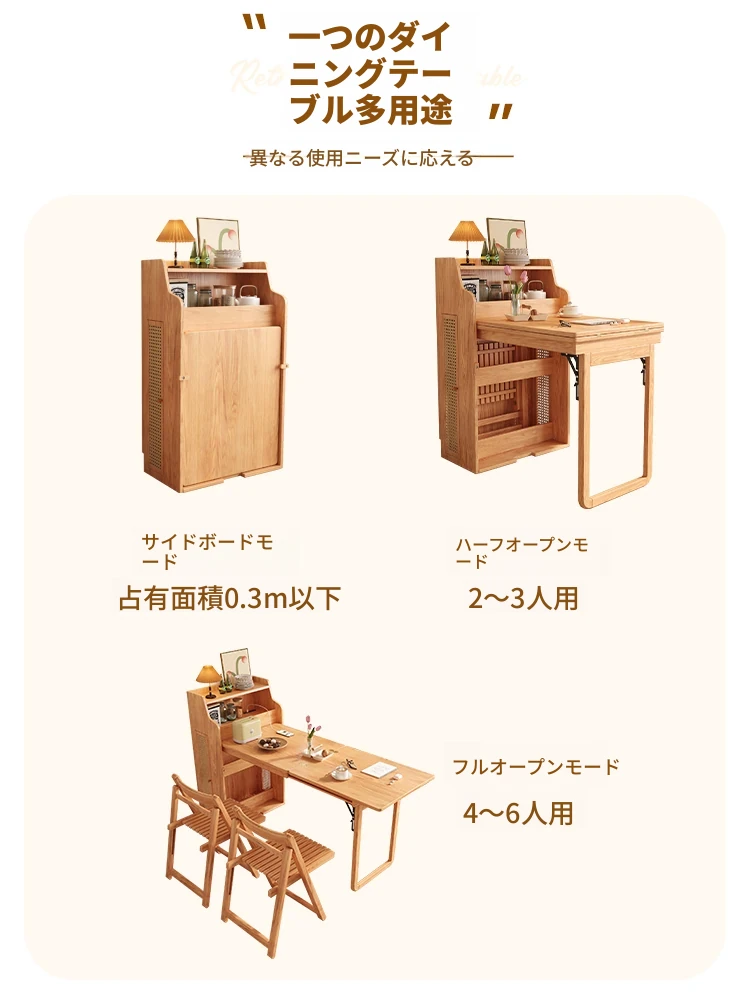 和風多機能折りたたみダイニングテーブル&キャビネット - スペースを節約する伸縮式コンパクトデザイン、小規模住宅に最適!シンプルな天然木脚のスタイリッシュなテーブル。