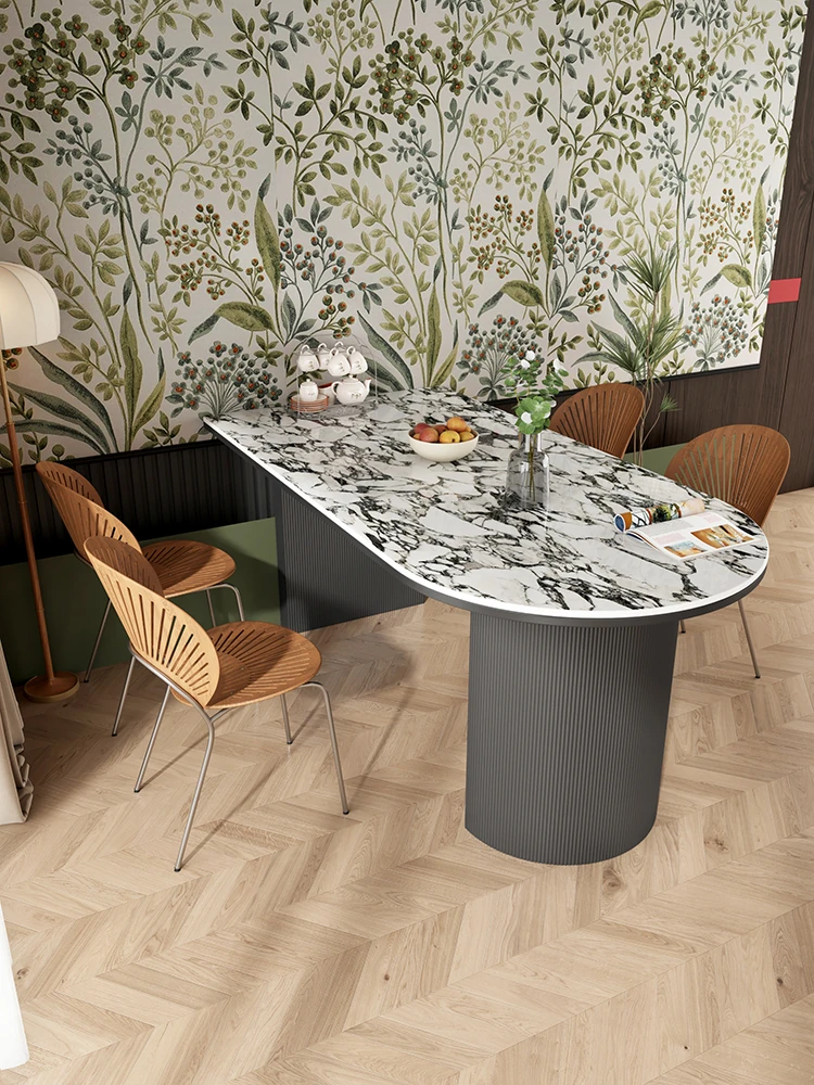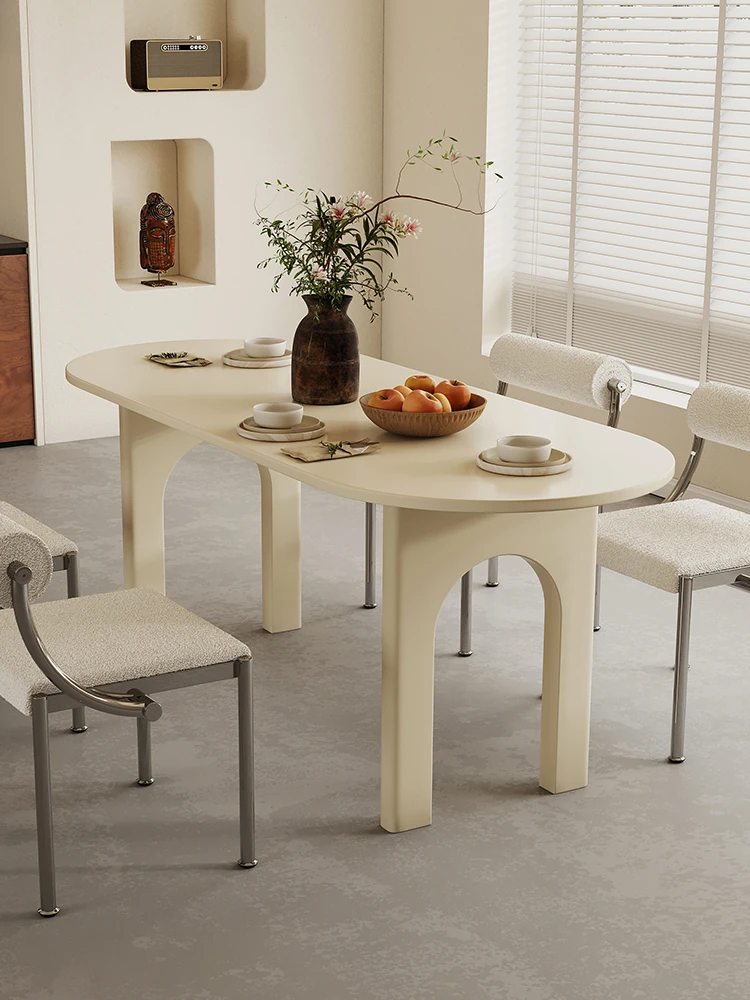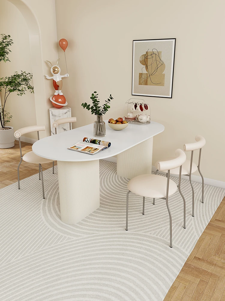【魅力満点】クリーム風軽奢フレンチスタイル大型岩板ダイニングテーブル−コンパクトでおしゃれな中島型 ホームダイニングにぴったりなユニークデザイン