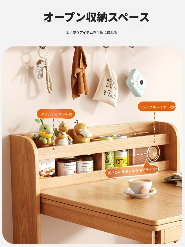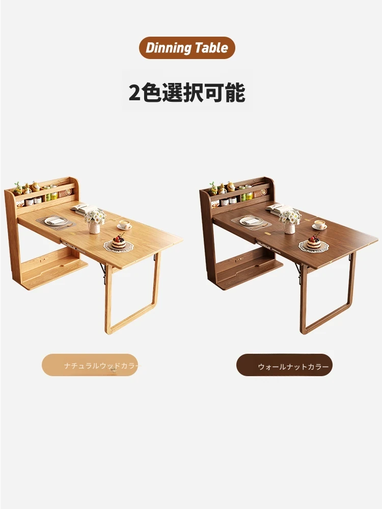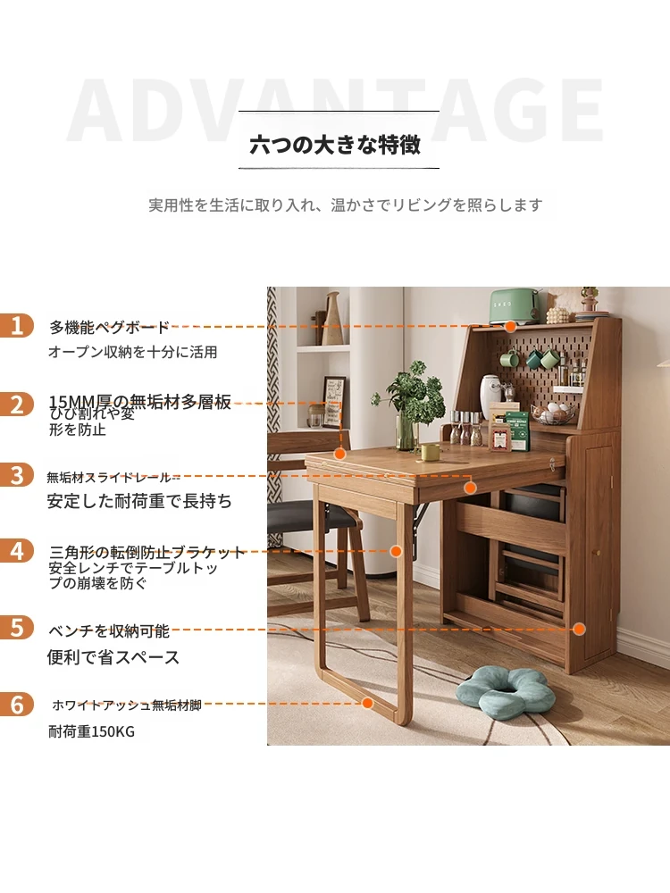 多機能折りたたみダイニングテーブル:省スペース設計、収納付きキャビネット、壁際にぴったりのコンパクトなサイズで、天然木の温かみを感じる伸縮式テーブル。小型住宅にも最適!