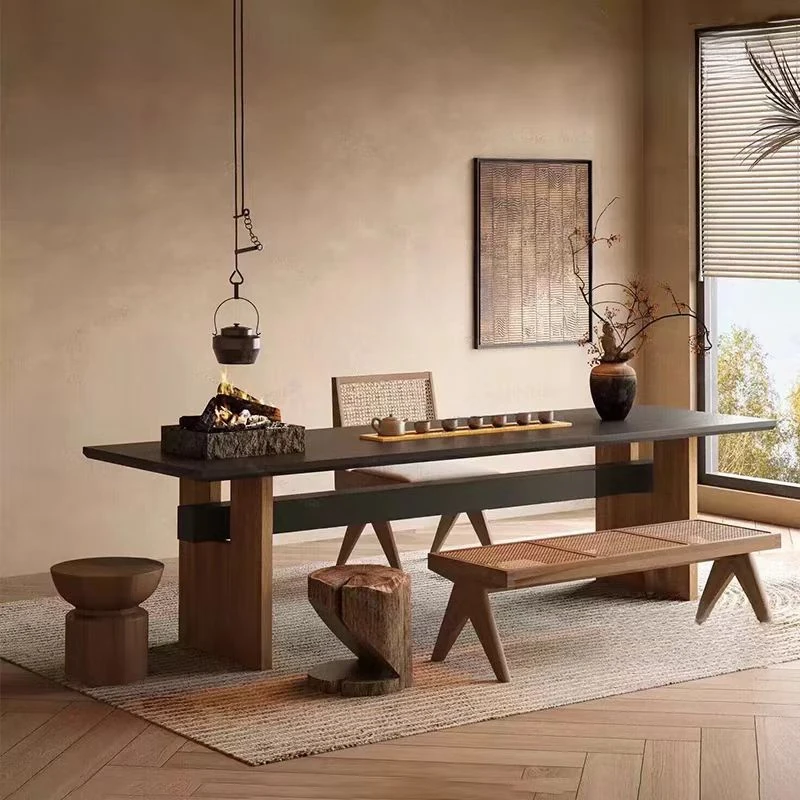 北欧風シンプルモダンな天然木製ミーティングテーブル - 会議、食事、作業に最適な多機能デスク