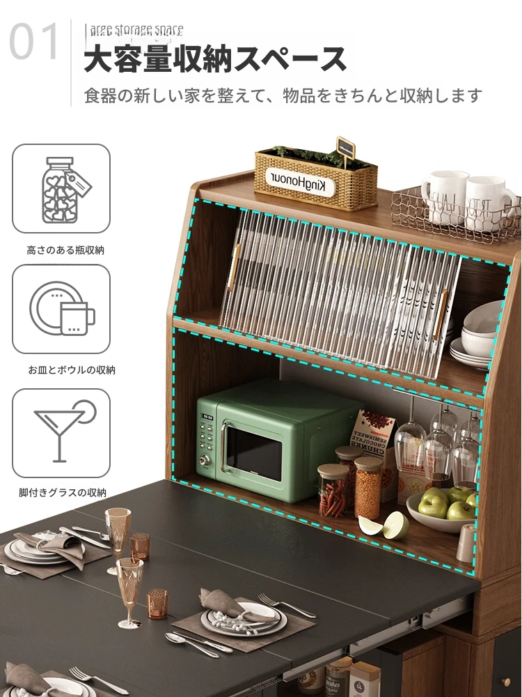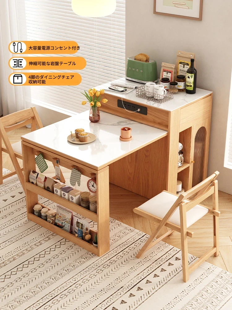 日本風岩板アイランドテーブル:多機能デザインでキッチン&ダイニングをスタイリッシュに演出!拡張可能な省スペース設計、収納キャビネット付きでコンパクトな住宅に最適です。食卓をもっと便利でおしゃれに!