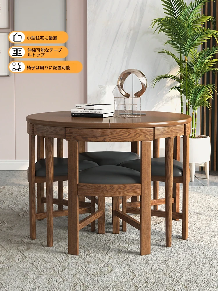 北欧風天然木製ラウンド折りたたみダイニングテーブルセット - 小スペースにも最適!中華スタイルの家庭用伸縮式デザイン、デザイナーズモデル