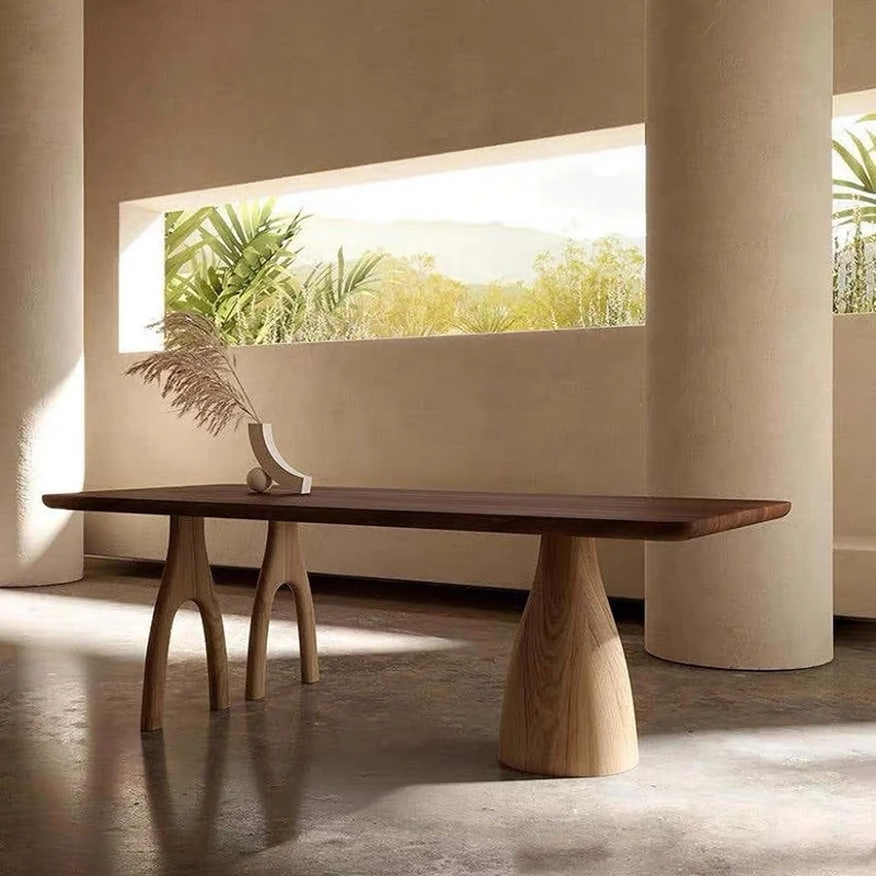 北欧レトロ風セメントカラー無垢材デザイナーズダイニングテーブル - おしゃれな空間を演出