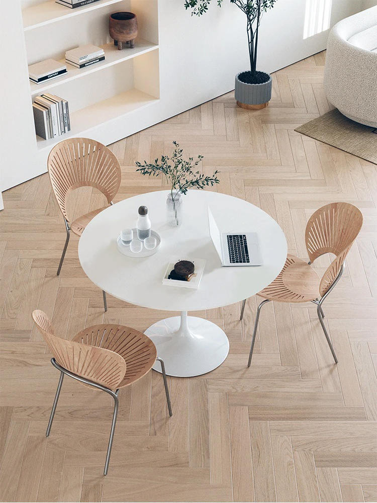 クリーミーな雰囲気を演出する円形デザイン!リラックスタイムに最適なダイニングテーブル&チェアセット