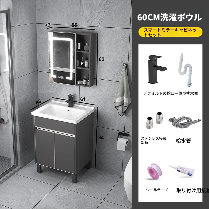 モダンでシンプルなデザイン!錆びないステンレス製バスルームキャビネット一体型陶器製洗面ボウルセット