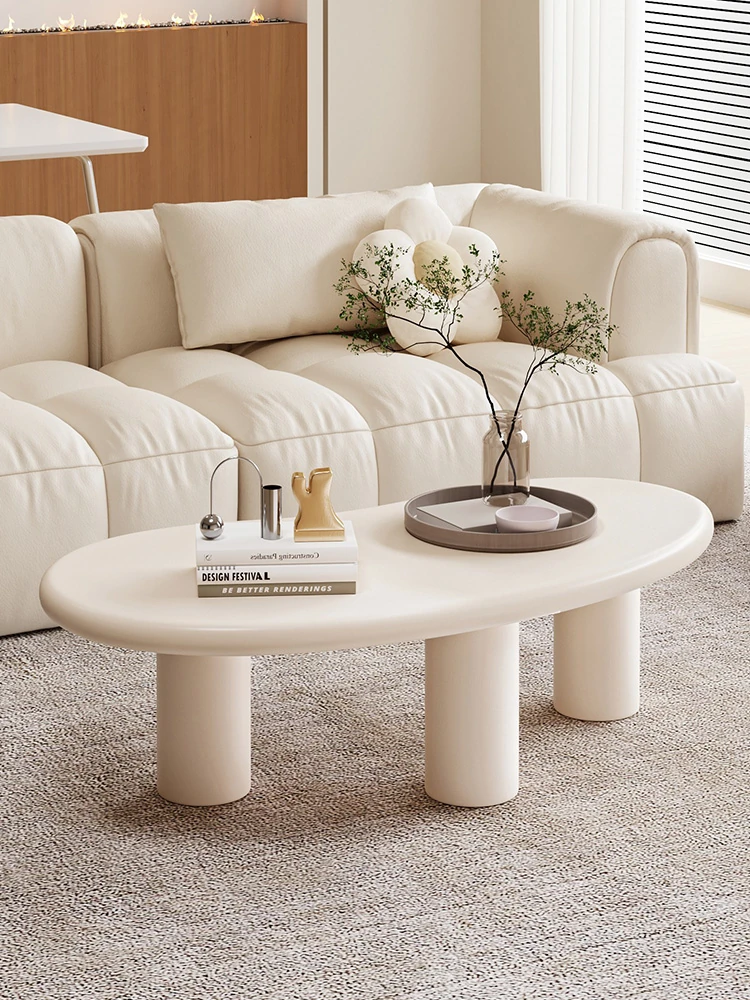 フレンチクリームスタイル💫エレガントなリビング用コーヒーテーブル✨コンパクトな家庭にぴったり!楕円形のホワイトテーブルで、イタリアンモダンな軽奢の魅力を演出🌟