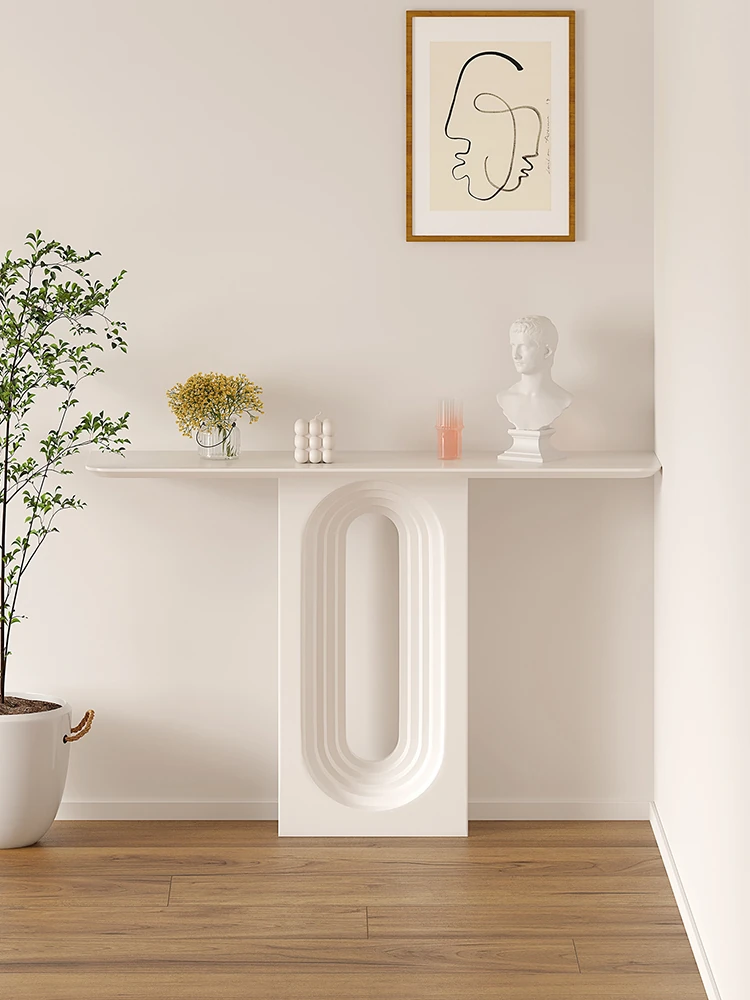 Contemporary Cream Trendy Entryway Table – Chic Console Cabinet for Hallway Decor, Perfect for a Stylish First Impression