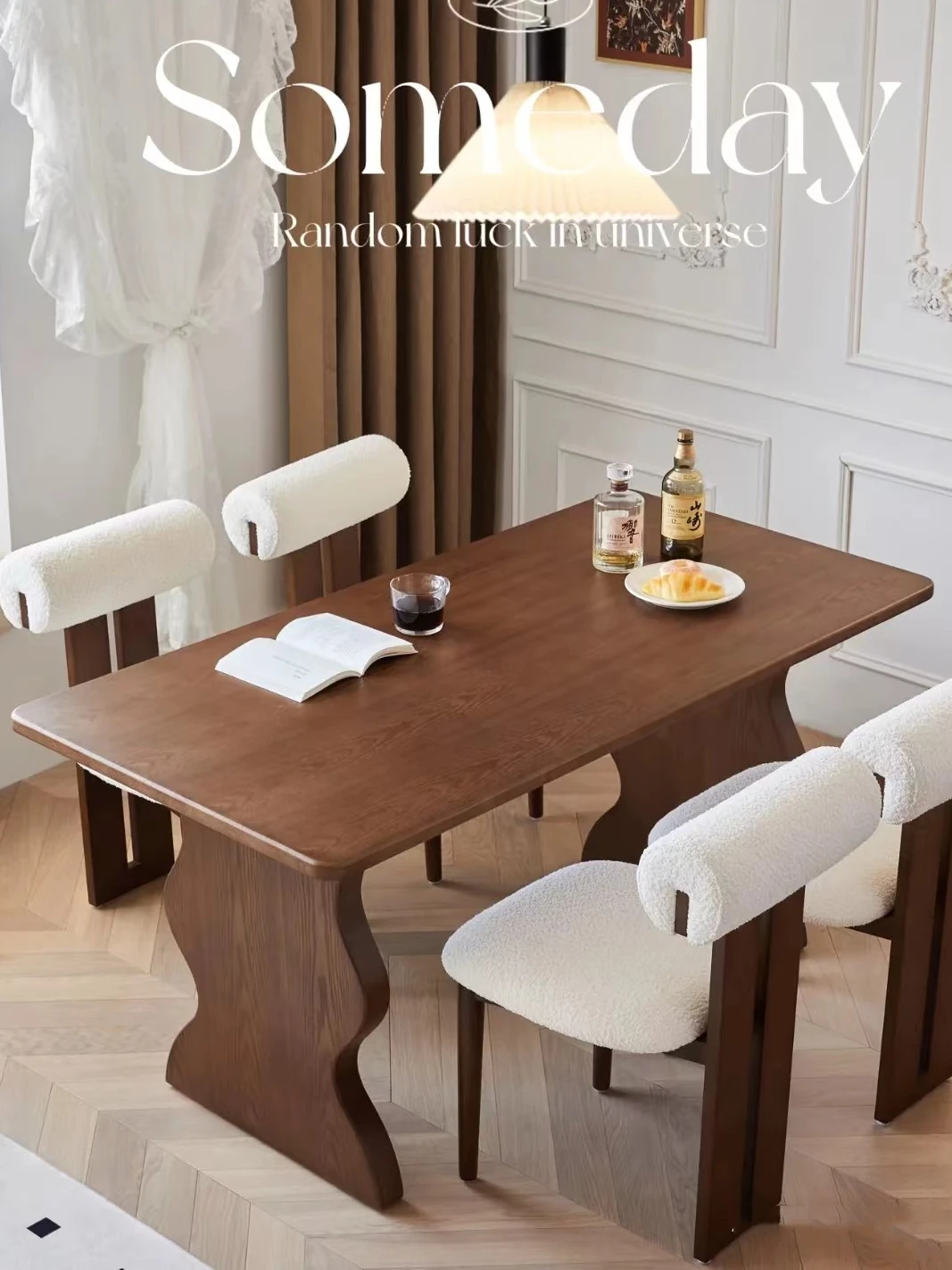Chic Vintage French Solid Ash Wood Dining Table Set - Perfect for Cozy Homes with a Creamy Touch
