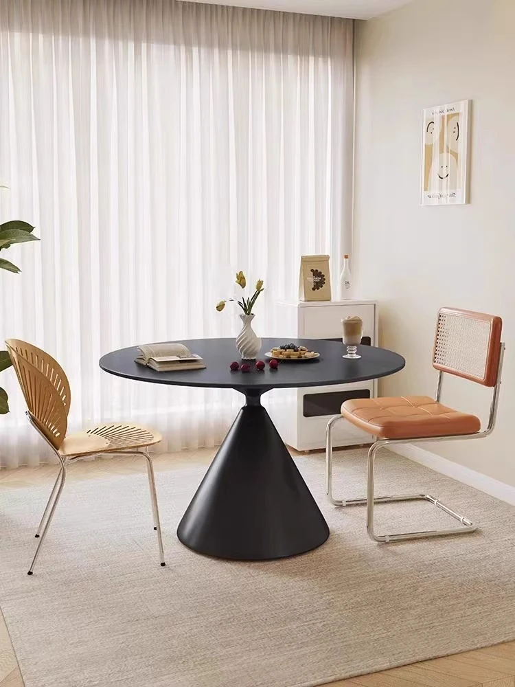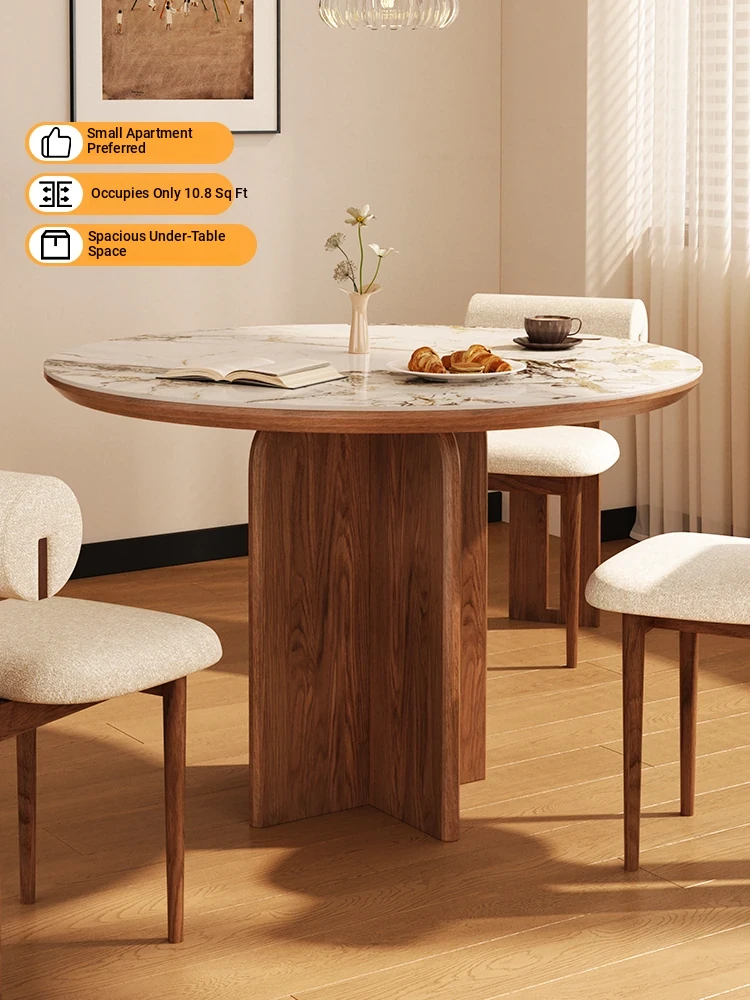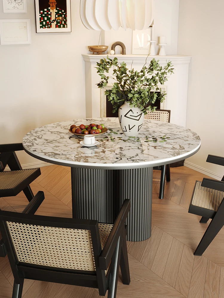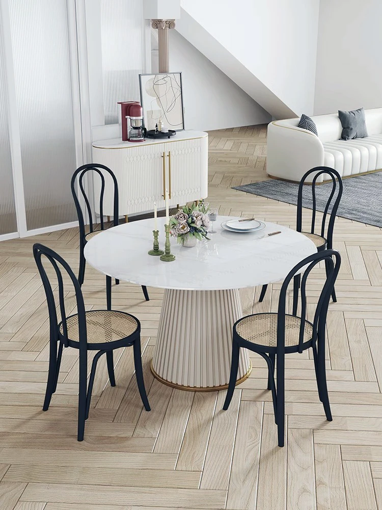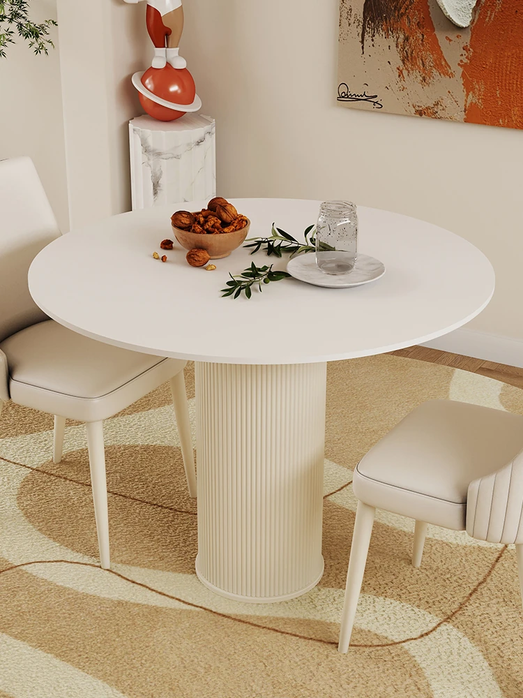 Nordic Modern Round Dining Table Set with Rock Slab - Chic and Luxurious Compact Design for Cozy Homes, Creamy Style Casual Dining Solution
