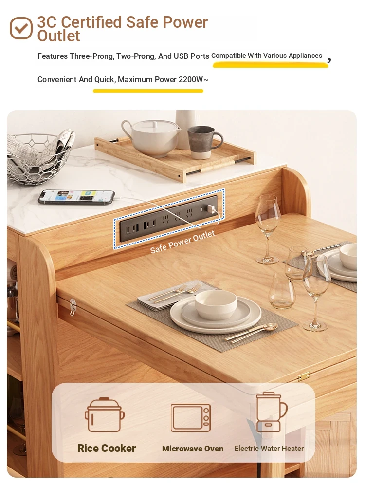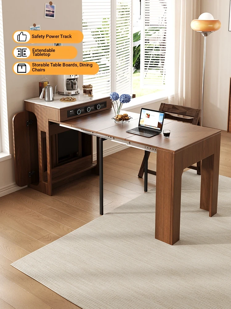 Title: Stylish Extendable Cream Dining Table with Storage: Perfect for Small Apartments - Home Dining & Tea Bar with Electric Rail for Easy Mobility