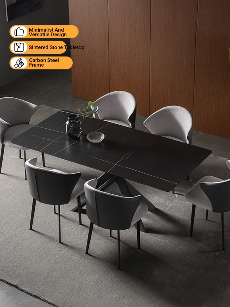 Italian Chic Style 12mm Sintered Stone Dining Table Set - Perfect for Compact Homes, Elegantly Crafted with Metal Frame for a Modern Touch