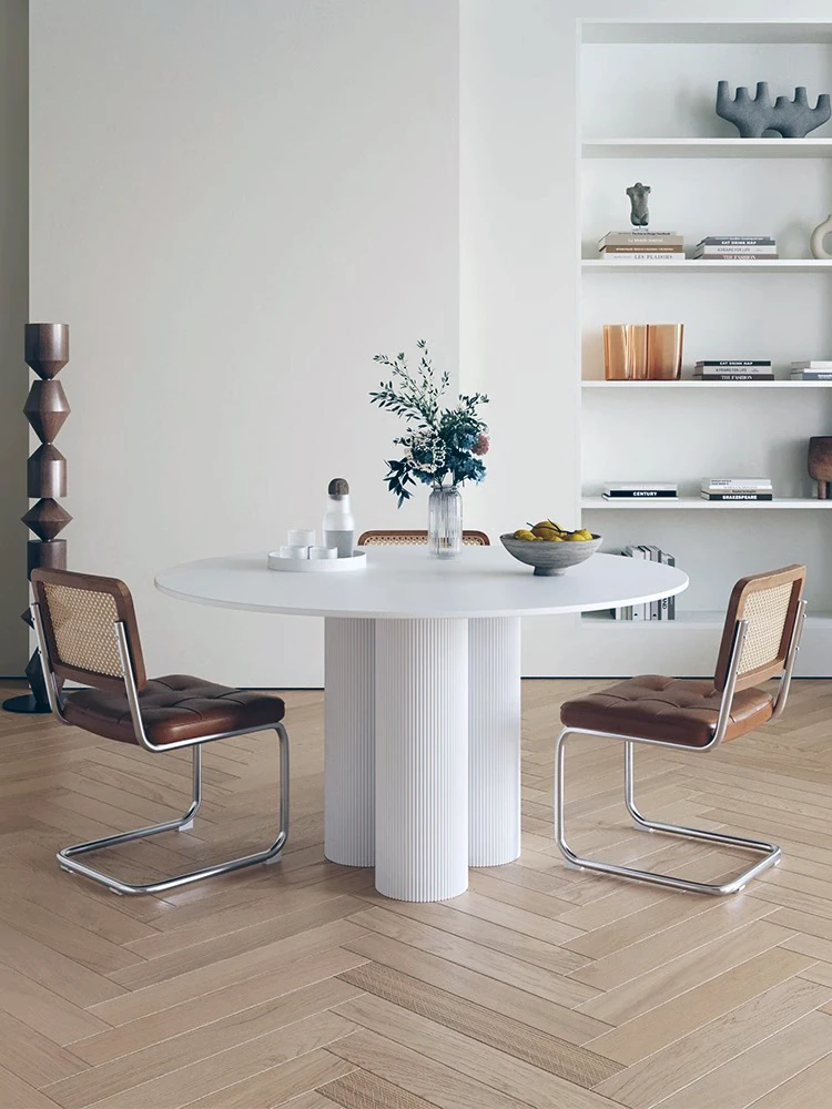 French-Style Bulgari Cream Wabi-Sabi Round Dining Table - Elegance Meets Modern Minimalism, Perfect for Chic Living Spaces