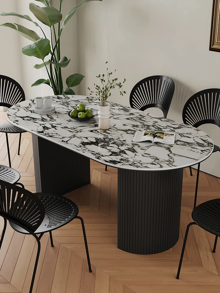 French Vintage Style Bvlgari Porcelain Slab Modern Minimalist Dining Table - Elegant & Timeless Design for Your Chic Dining Experience