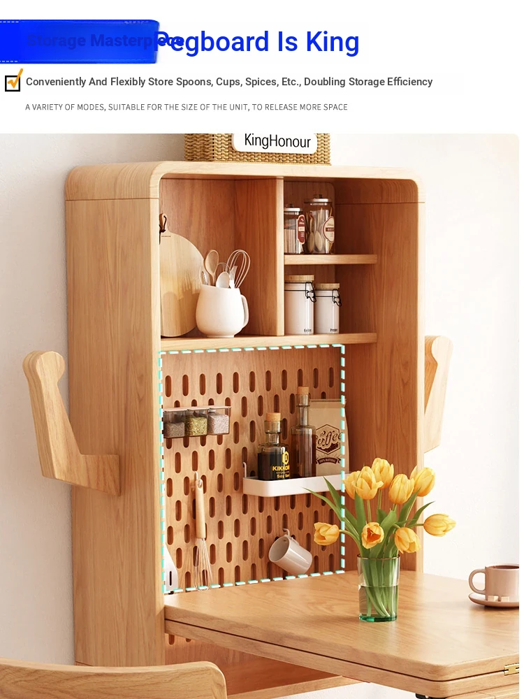 Nordic Space-Saving Expandable Dining Set with Island, Chairs, and Side Cabinet - Perfect for Compact Homes!