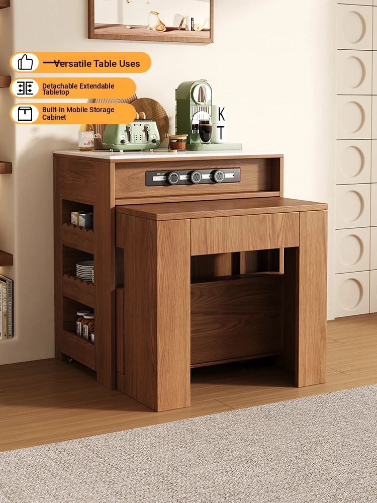 Nordic Extendable Kitchen Island Table Set - Space-Saving Dining Solution with Movable Cabinet and Chairs for Modern Homes