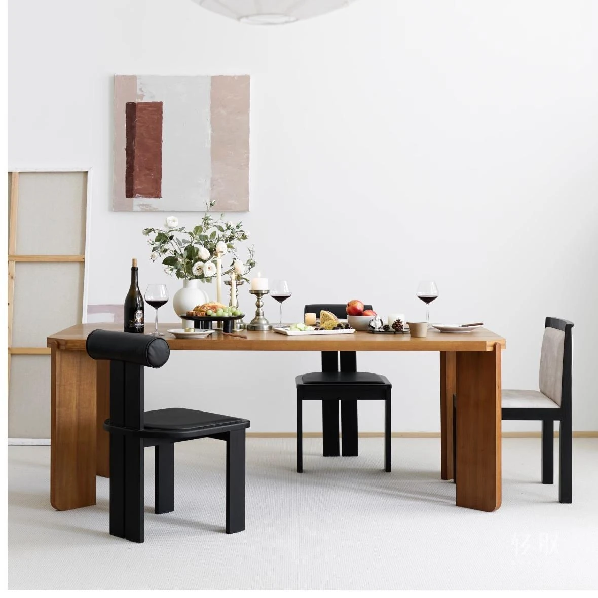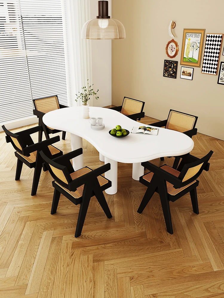 标题翻译与优化: "Unique Irregular Cloud-Shaped Solid Wood Dining Table and Chair Set - Modern Elegance for Your Home"
