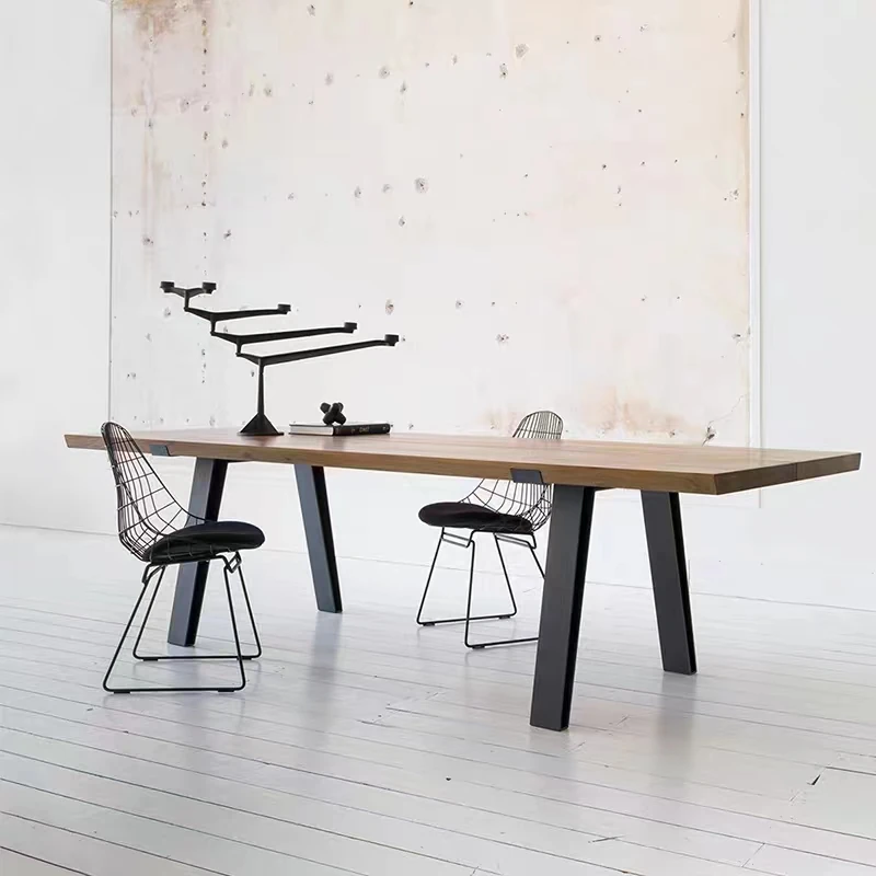 Vintage Industrial Loft Solid Wood Office & Conference Table - Modern Rectangular Iron Dining Table with Rustic Charm
