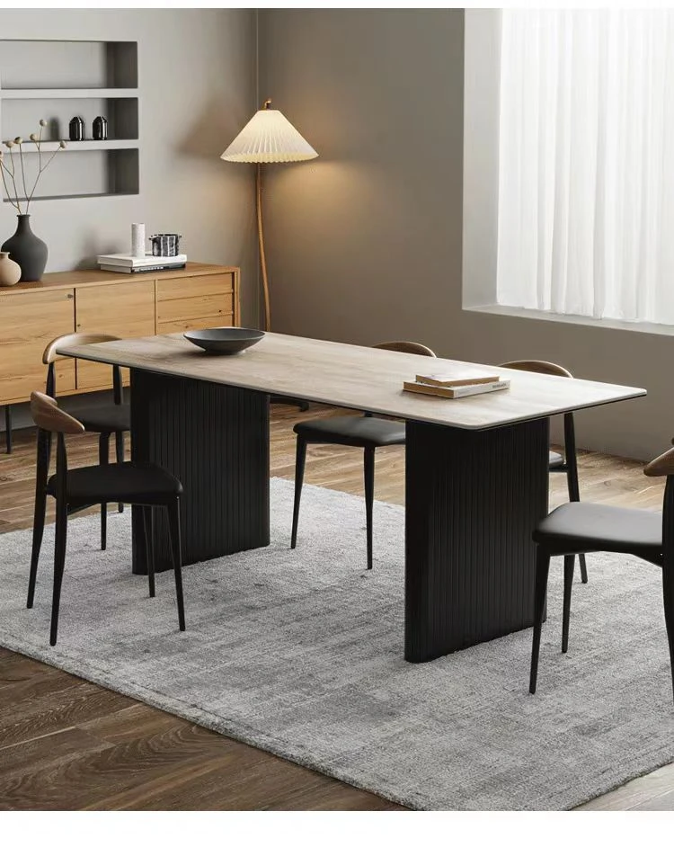 Scandinavian Minimalist White Ash Dining Table – Italian Modern Style Rectangular Black Table, Designer Creative Desk & Workstation - Perfect for Sophisticated Interiors