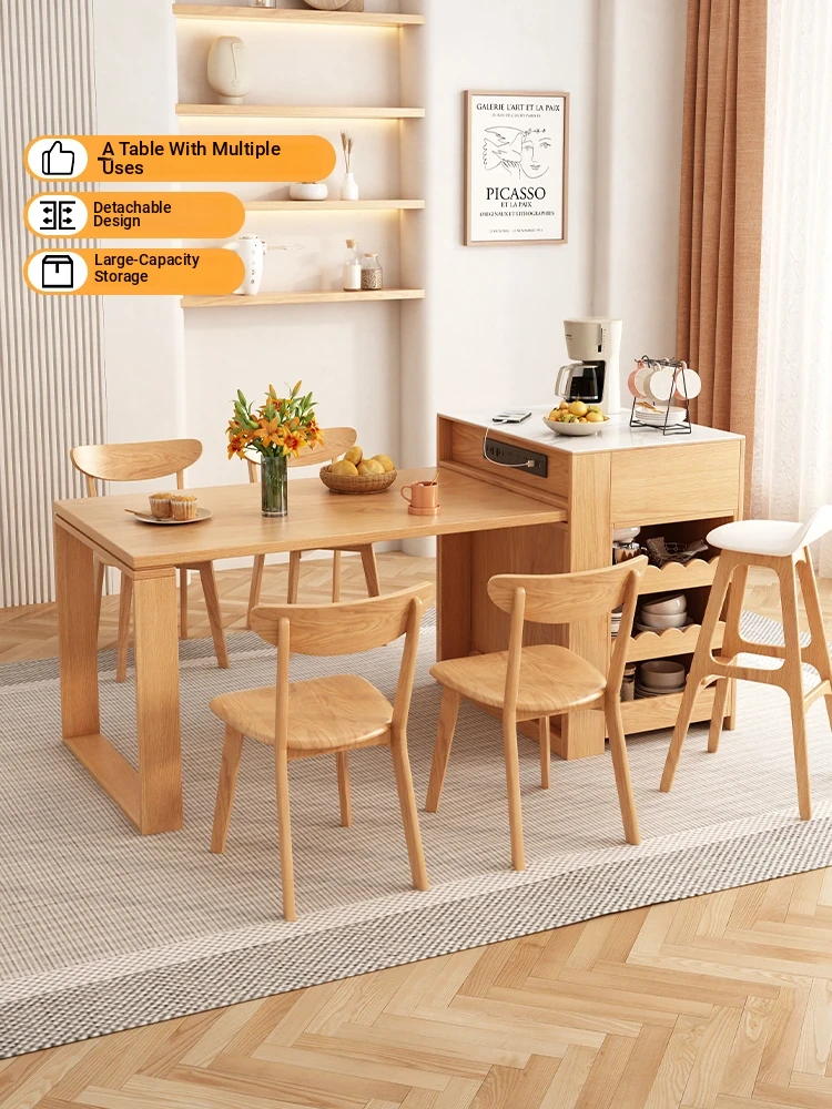 Nordic Multi-Functional Folding Dining Table and Side Cabinet - Compact Solid Wood Design for Small Spaces, Expandable Hidden Storage Dining Solution