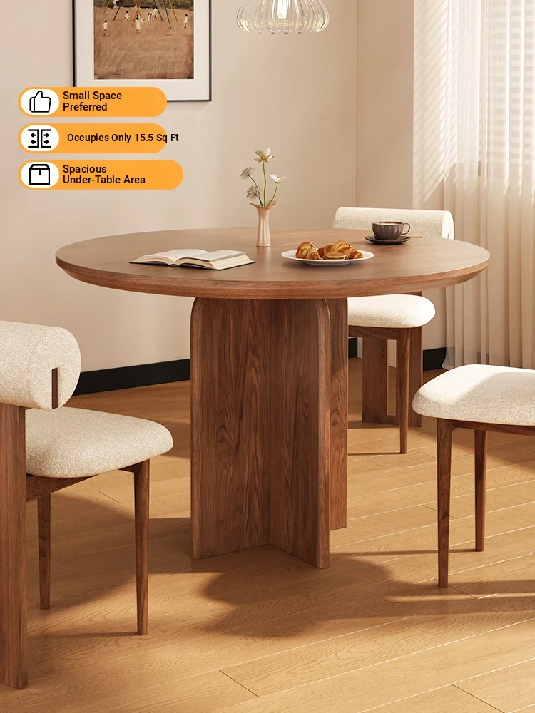 Cream Breeze Creative Solid Wood Round Dining Table - Stylish and Casual Design