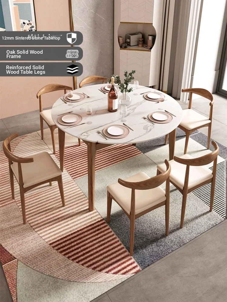 Scandinavian Style Expandable Dining Table Set with Induction Cooktop - Modern Solid Wood Round Dining Table and Chairs for Small Spaces, Perfect for Cozy Homes