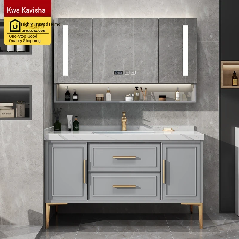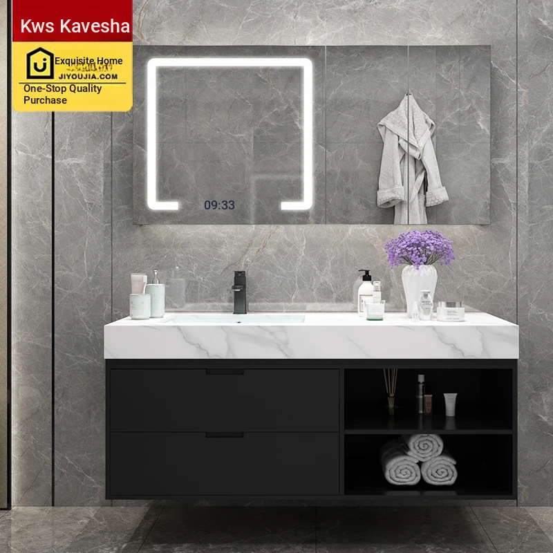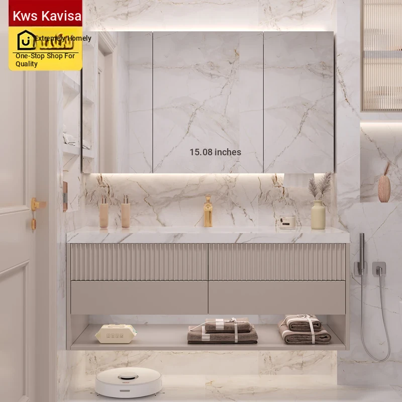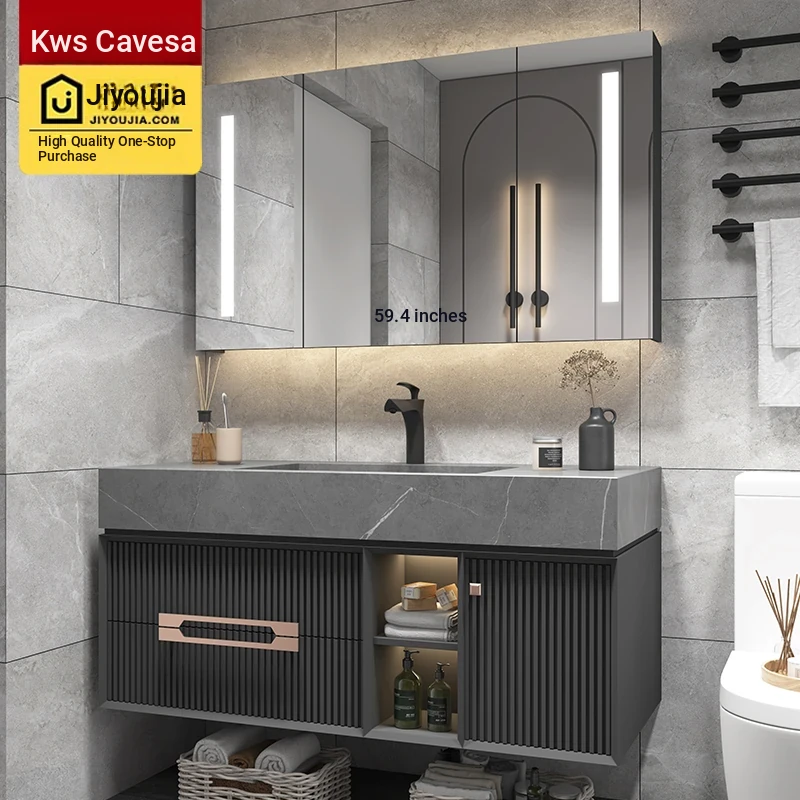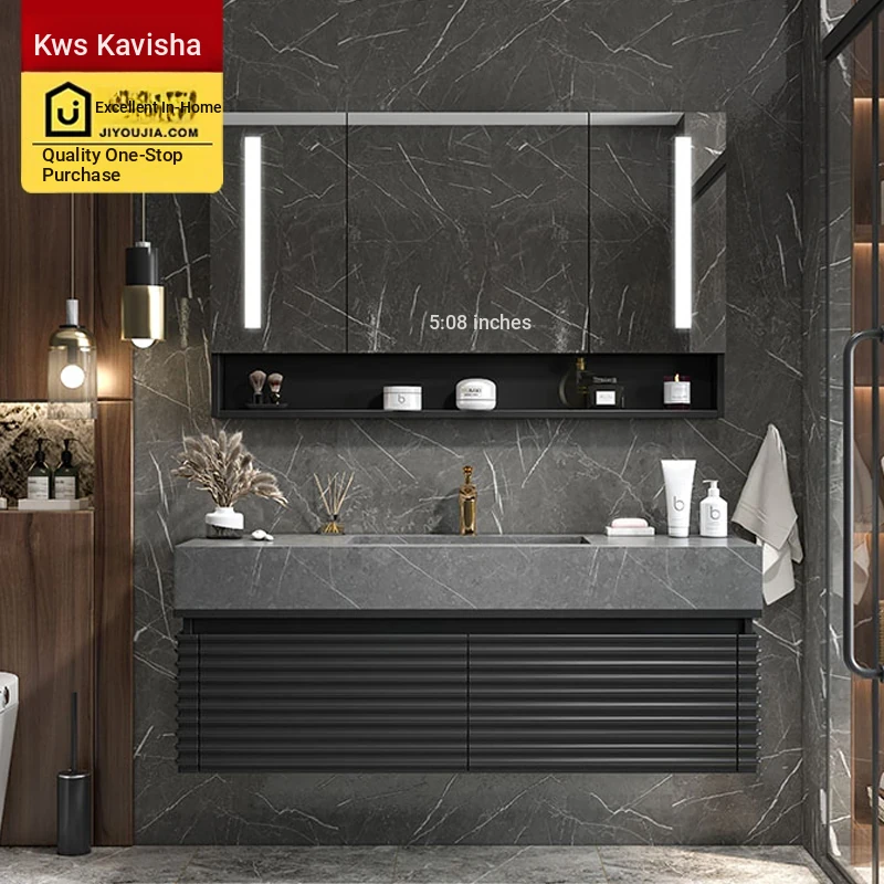 Modern Luxury Smart Bathroom Vanity Set - Integrated Sink with Stone Basin, Lavatory Cabinet & Washstand for Ultimate Elegance and Convenience