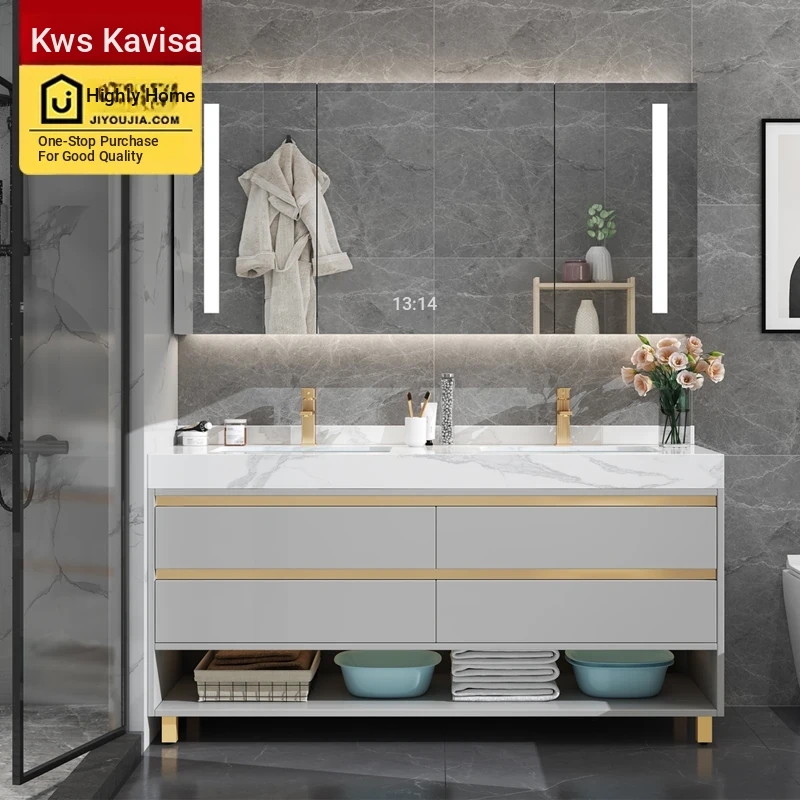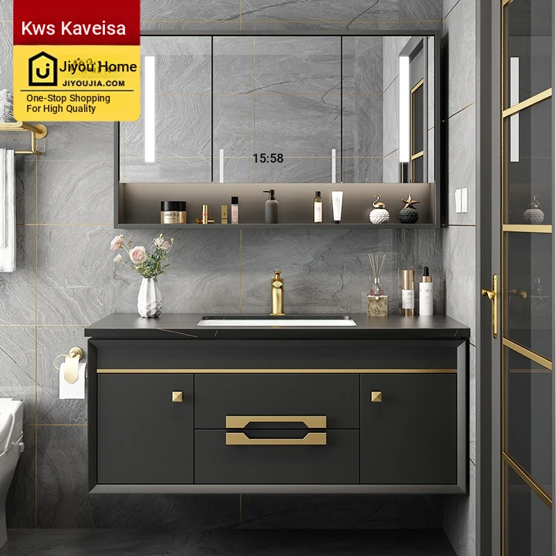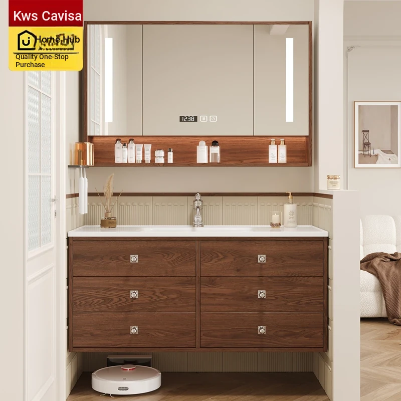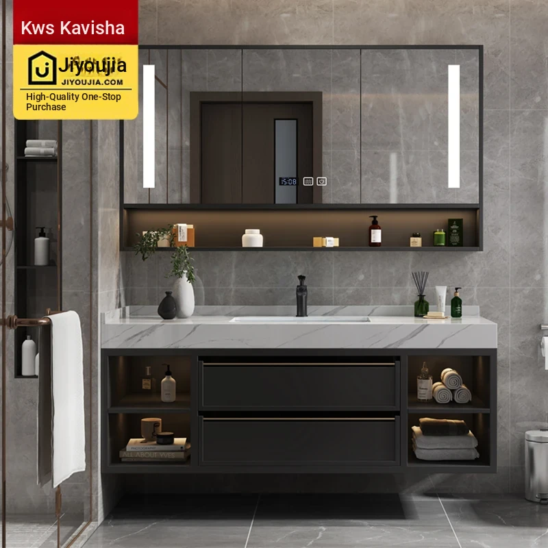 Modern Luxurious Solid Wood Bathroom Vanity Set - Minimalist Sintered Stone Washbasin Cabinet with Smart Mirror for Stylish Bathrooms