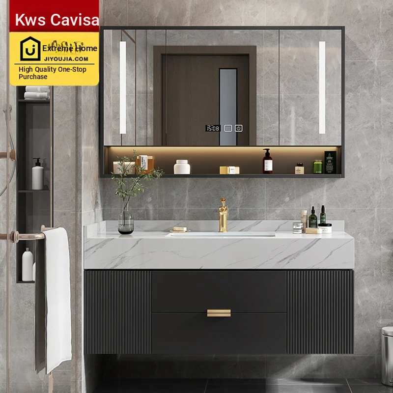 Modern Minimalist Sintered Stone Bathroom Vanity Combo - Solid Wood Sink and Basin Cabinet with Mirror: Perfect for a Stylish, Clutter-Free Bathroom