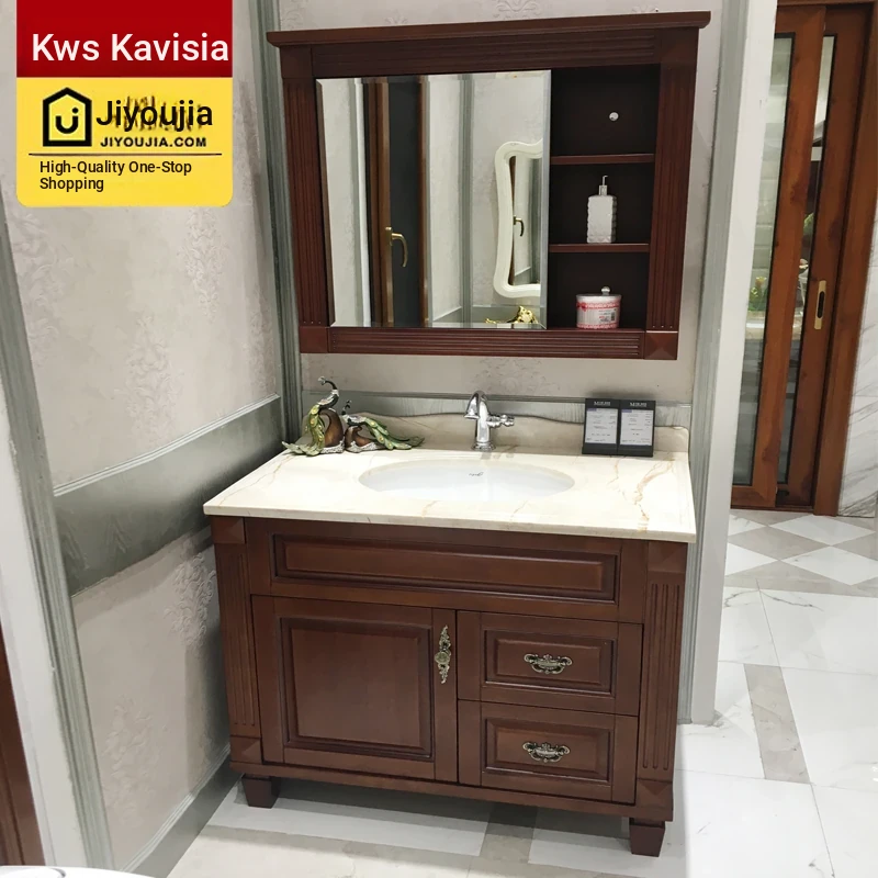French Oak Bathroom Vanity Set - American Modern Luxury Solid Wood Lacquer Finish, Elegant Sink & Storage Cabinet for a Stylish Bathroom