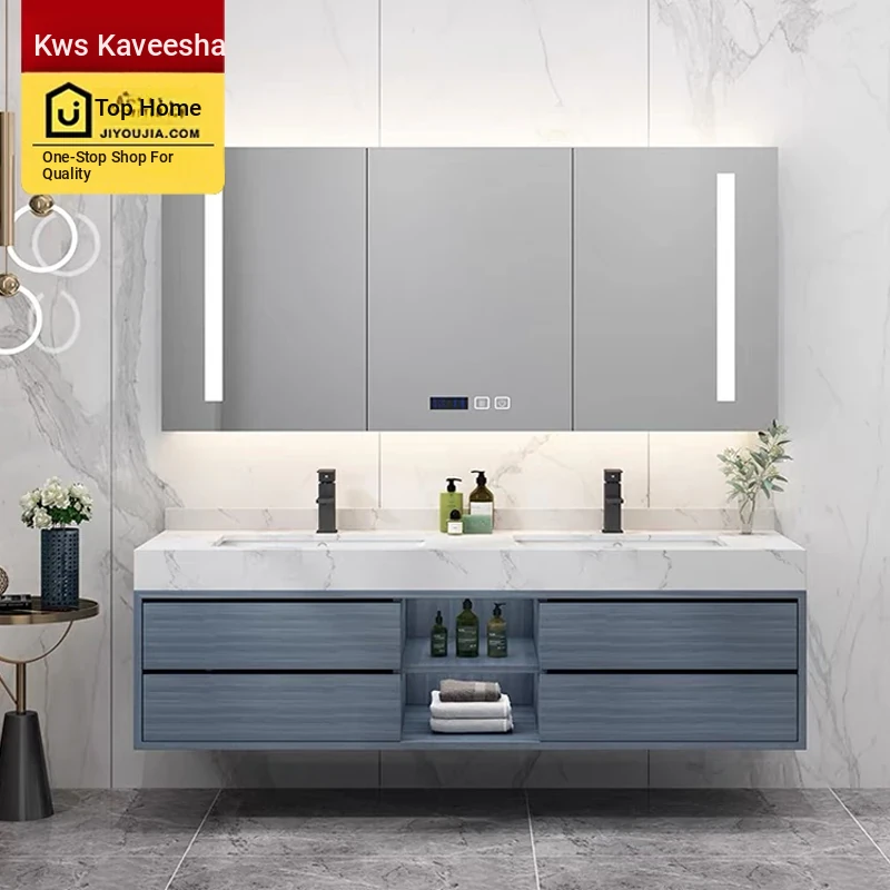 Luxurious Modern Bathroom Vanity Set - Solid Wood with Stone Countertop, Smart Sink Cabinet for a Stylish Washroom