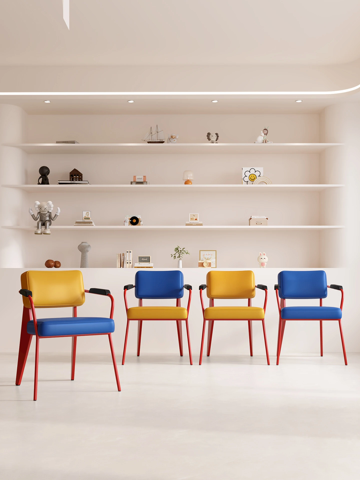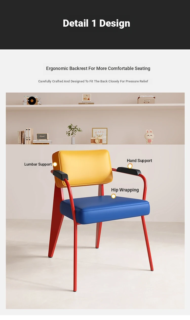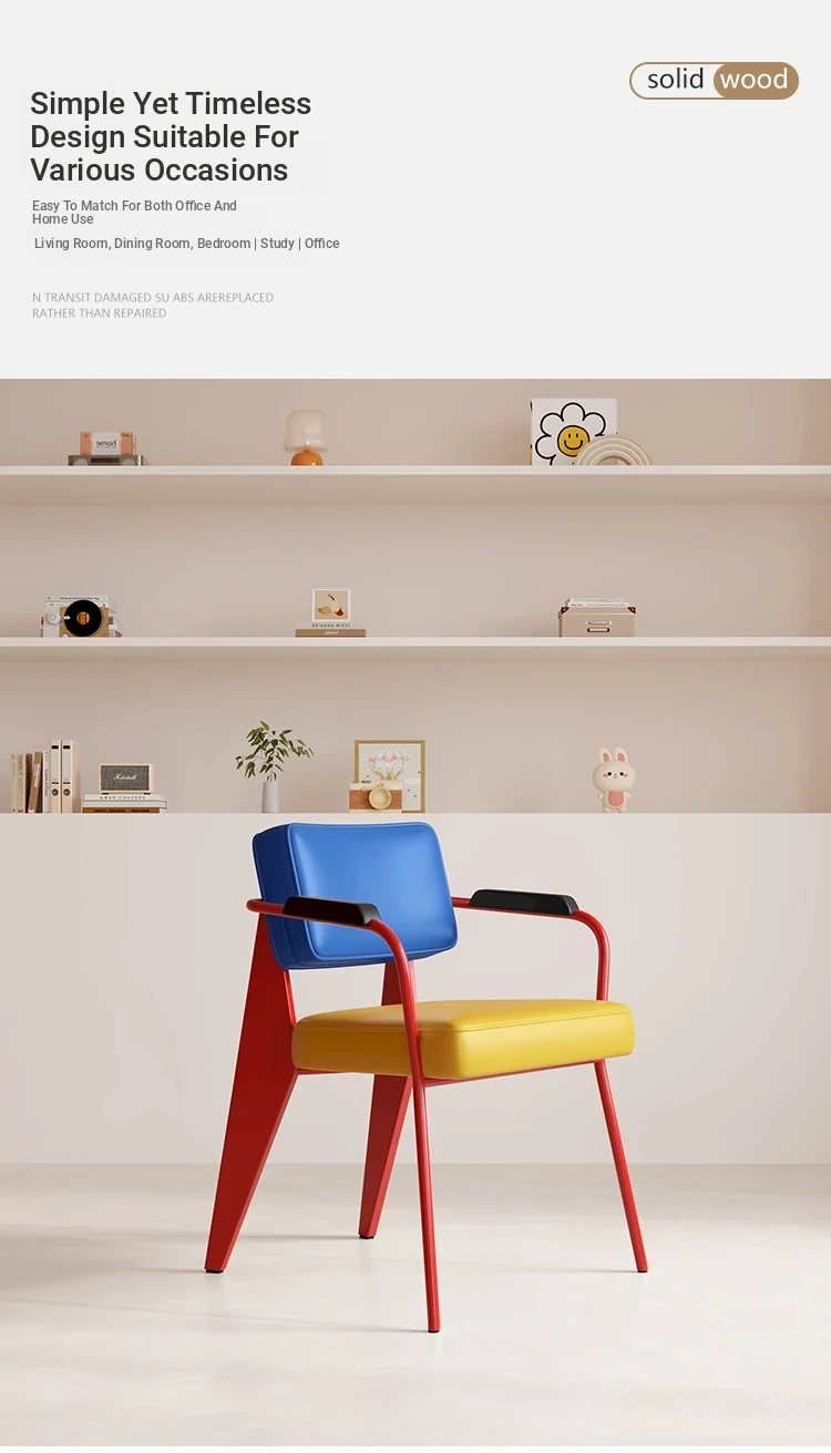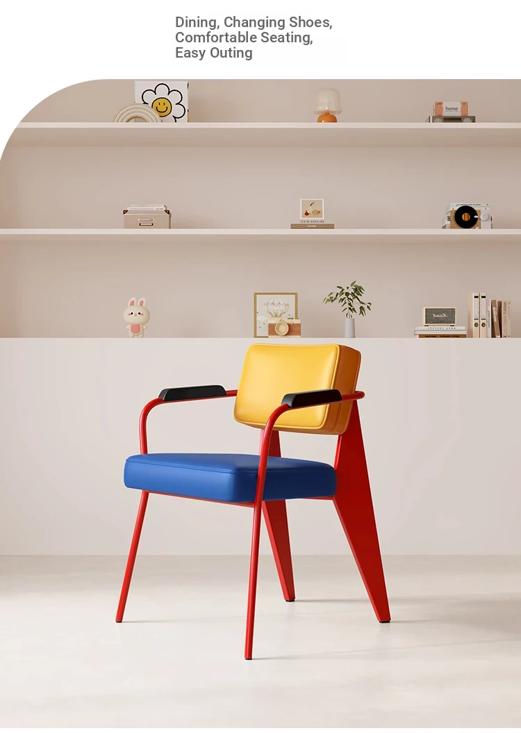 Elegant Dining Chair for Home & Café - Memphis Style Nordic Minimalist Modern Design with Metal Armrests