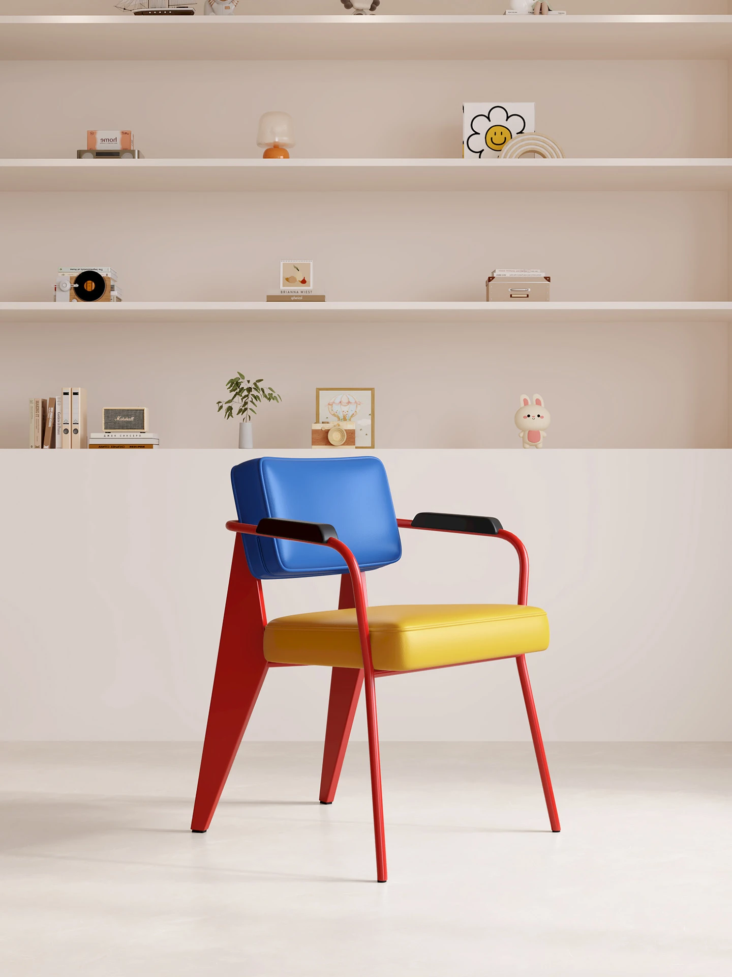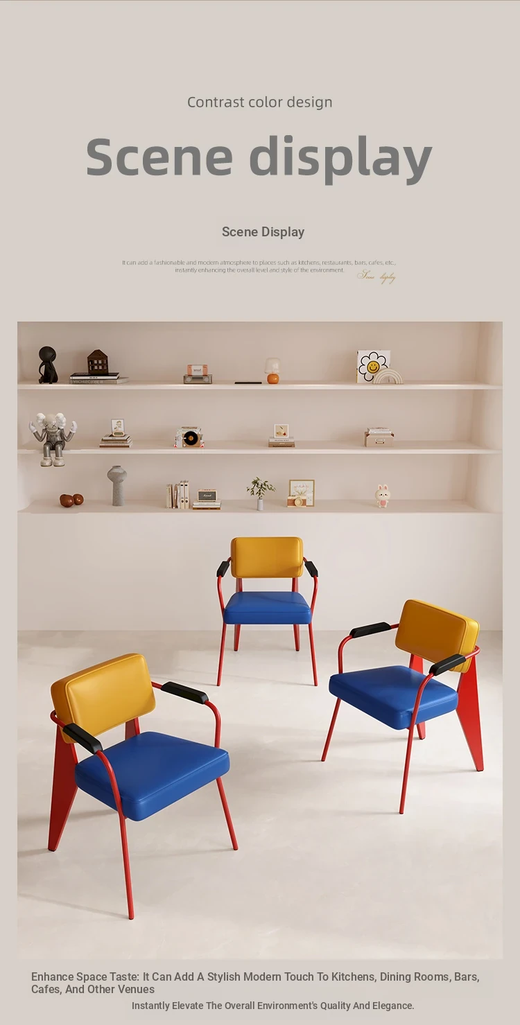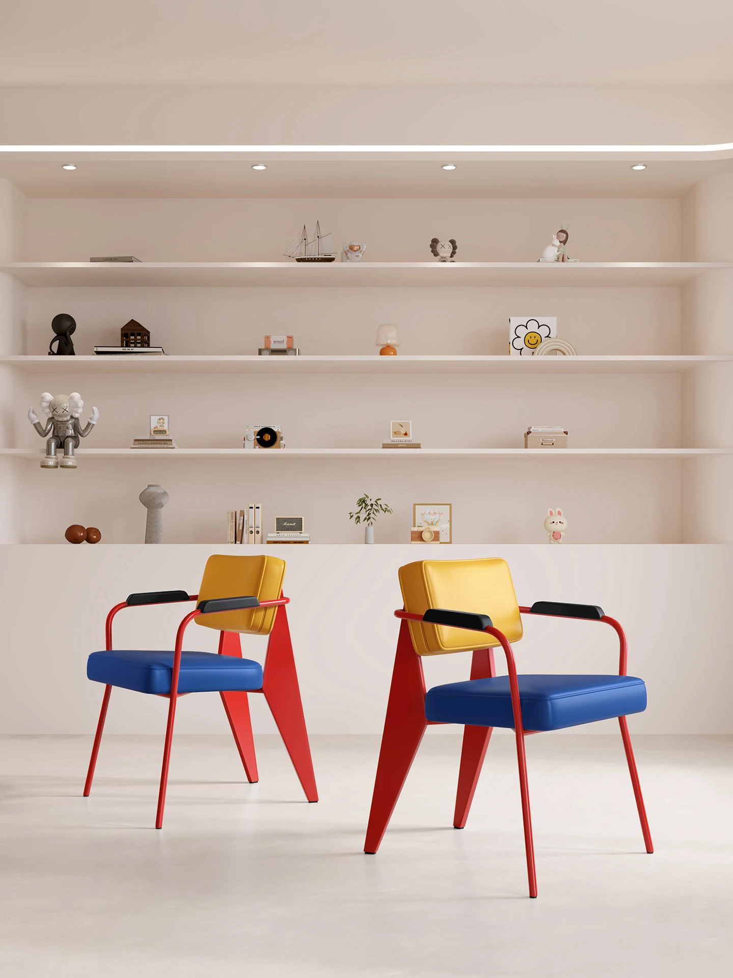 Elegant Dining Chair for Home & Café - Memphis Style Nordic Minimalist Modern Design with Metal Armrests