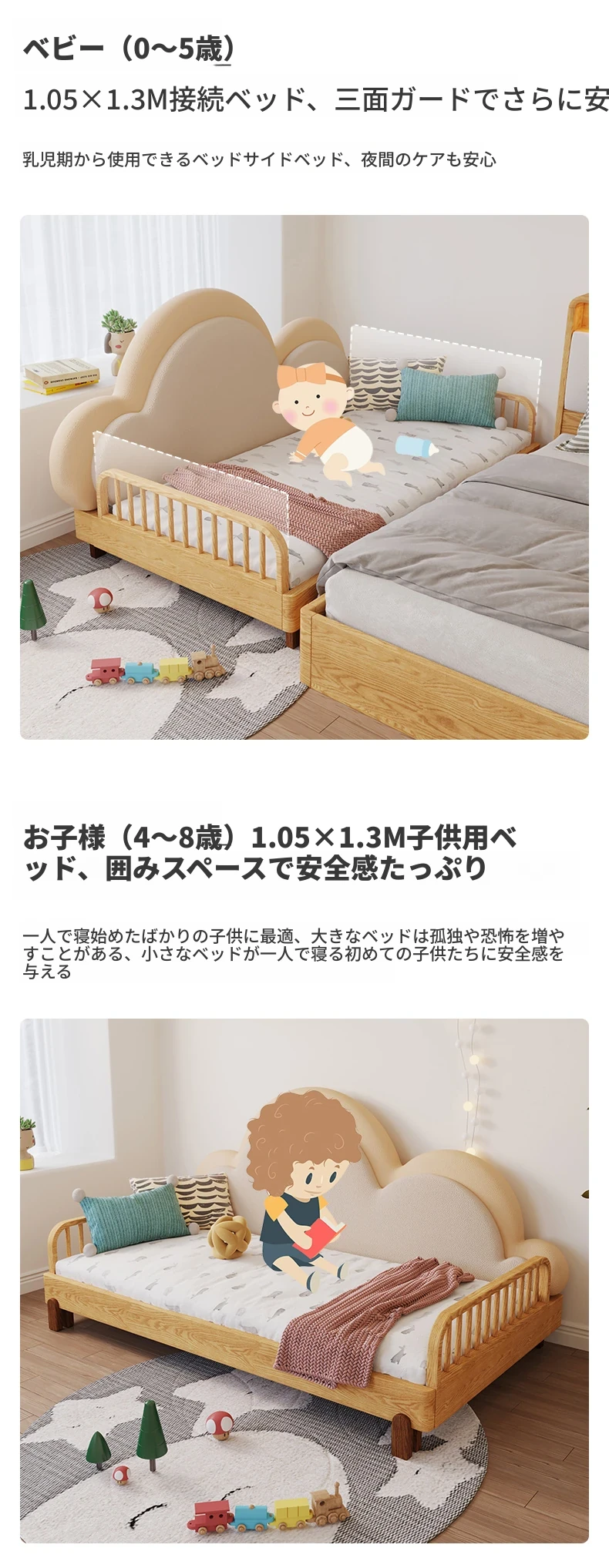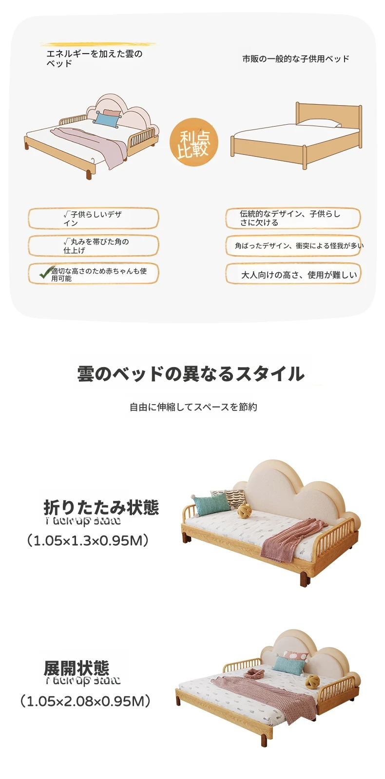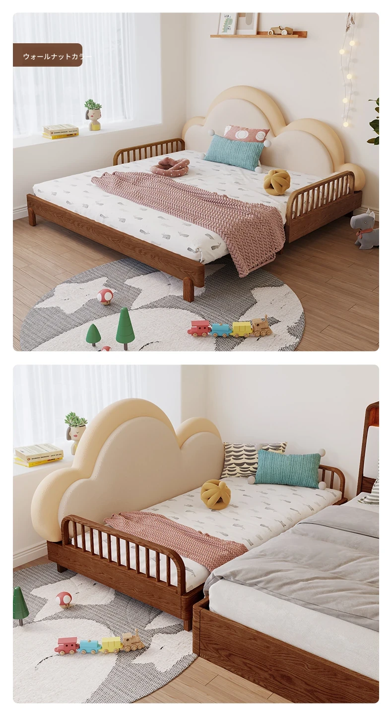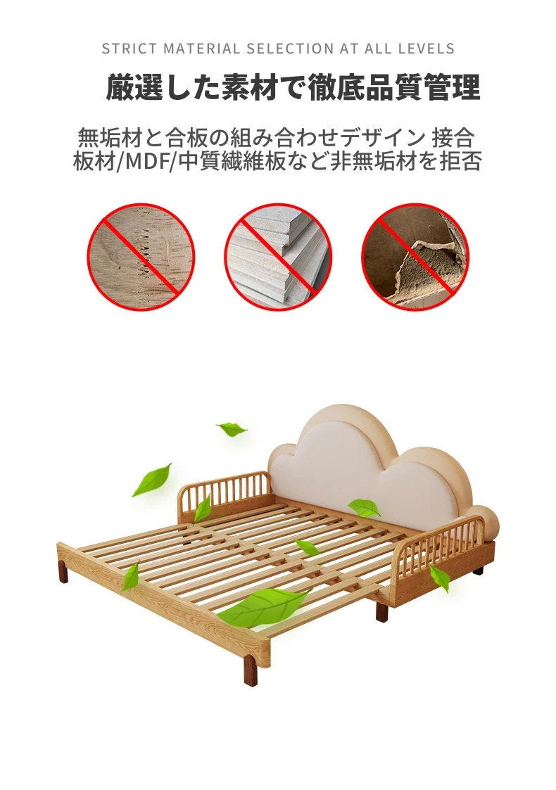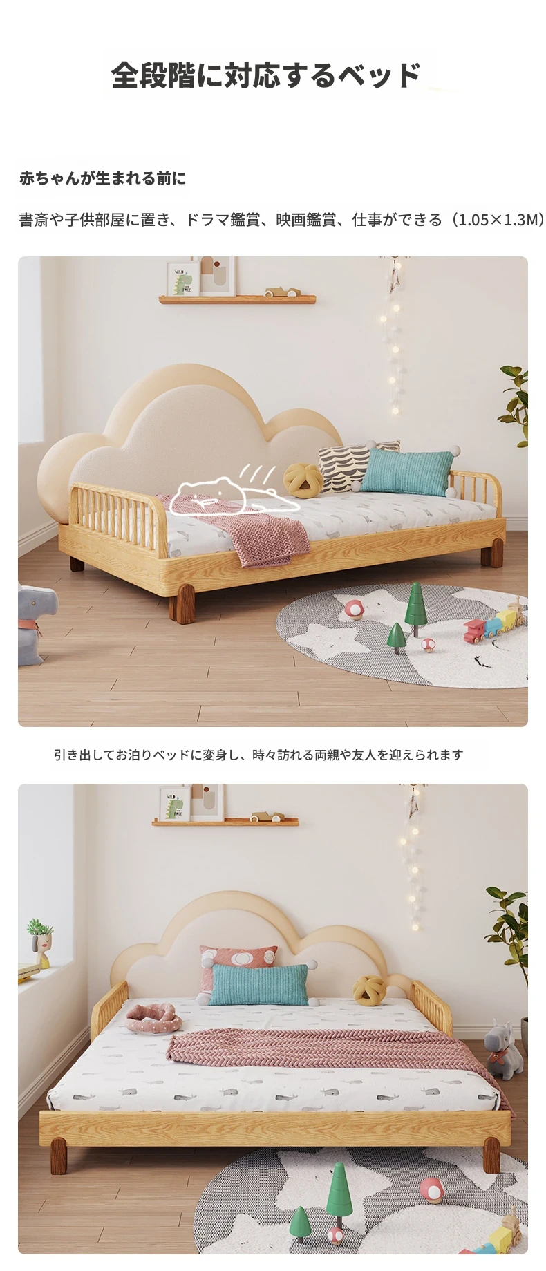 【夢の雲ベッド】天然木製子供用ベッド 組み合わせ可能・幅広設計 安全ガード付き!伸縮可能で引き出し収納付き、ベッドとソファの2WAYで小空間に最適