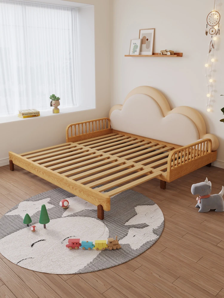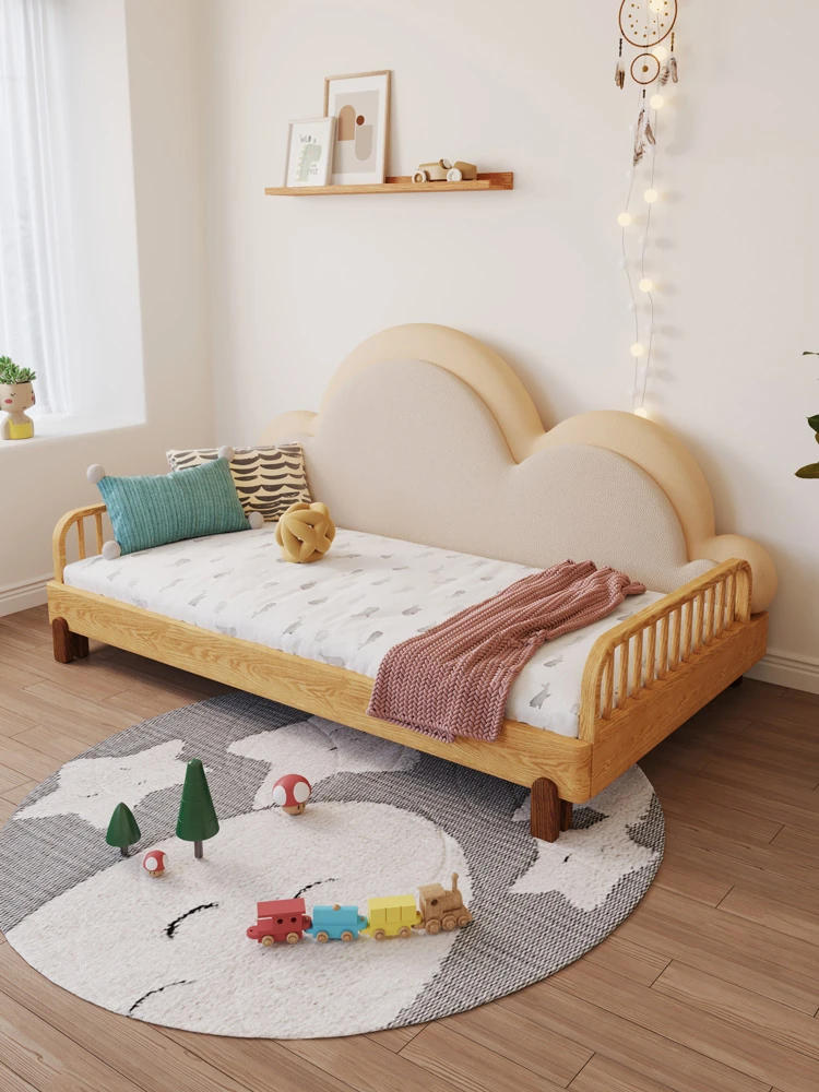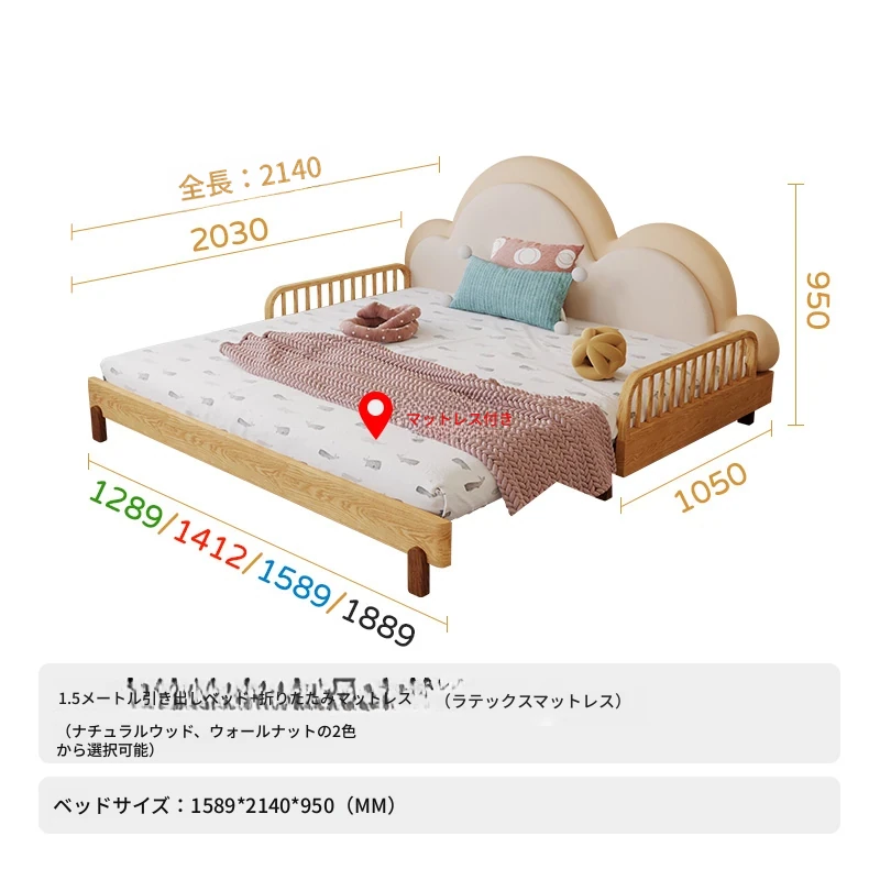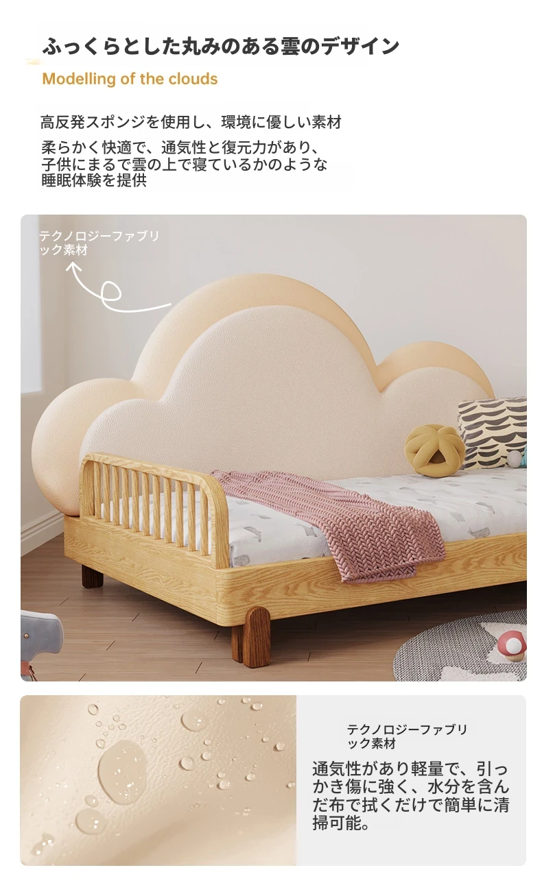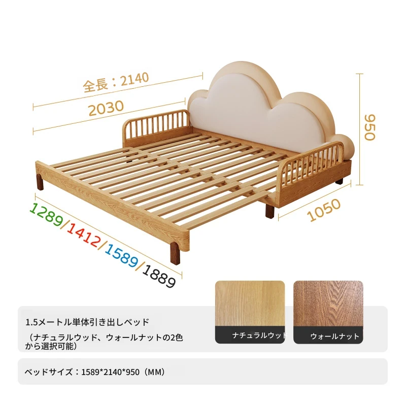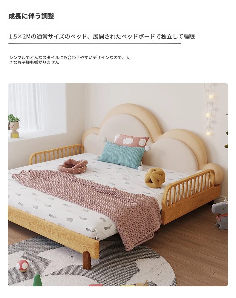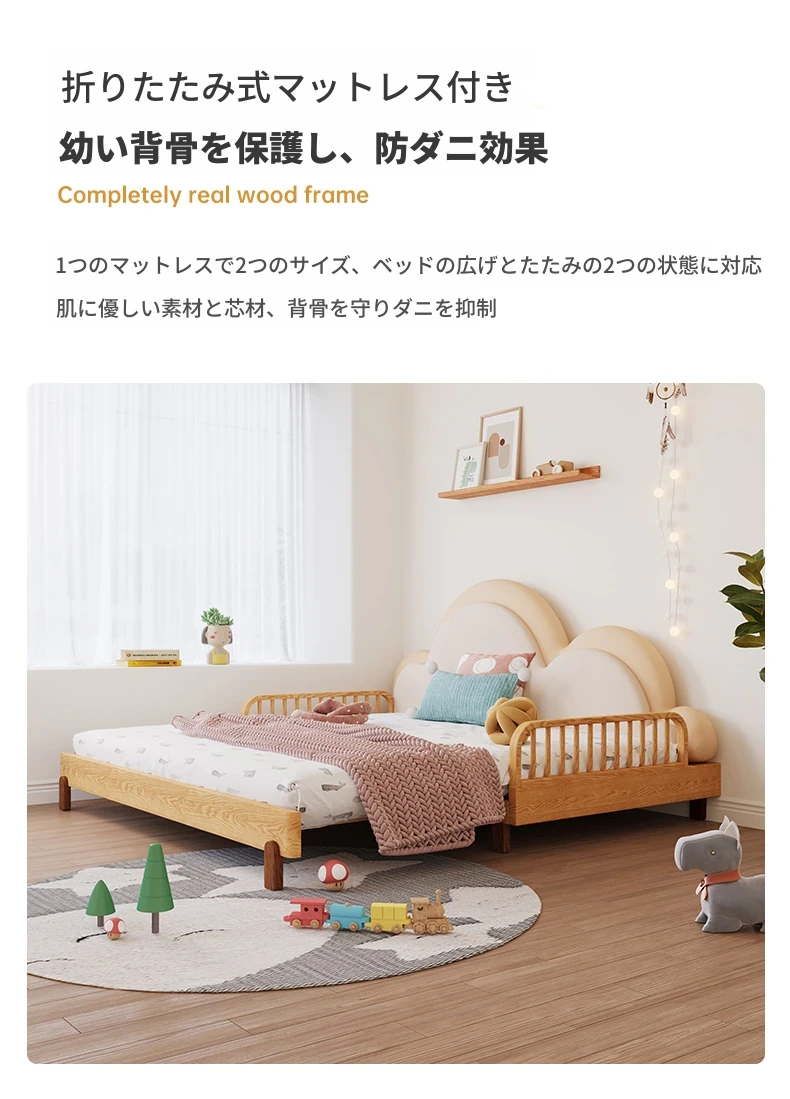 【夢の雲ベッド】天然木製子供用ベッド 組み合わせ可能・幅広設計 安全ガード付き!伸縮可能で引き出し収納付き、ベッドとソファの2WAYで小空間に最適