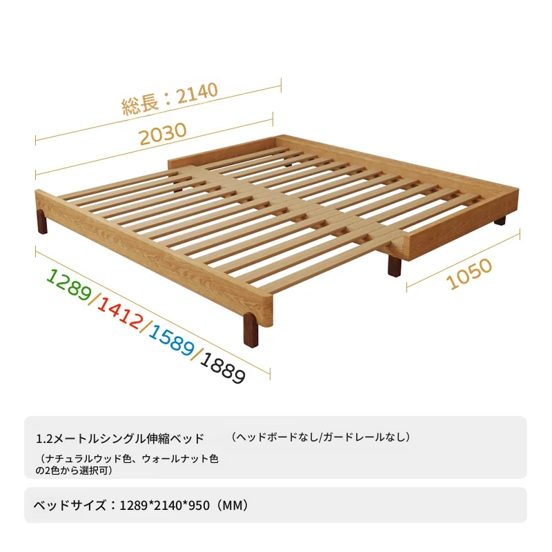 1.2メートルシングル伸縮ベッド(ヘッドなし/柵なし)