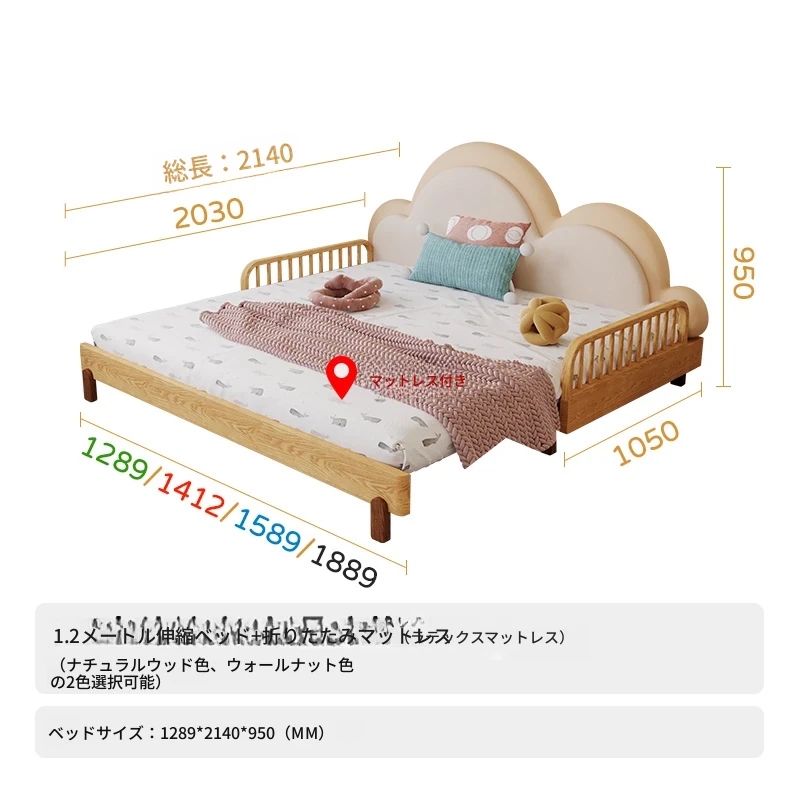 1.2メートル伸縮ベッド+折りたたみマットレス