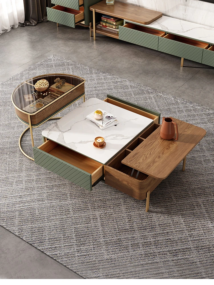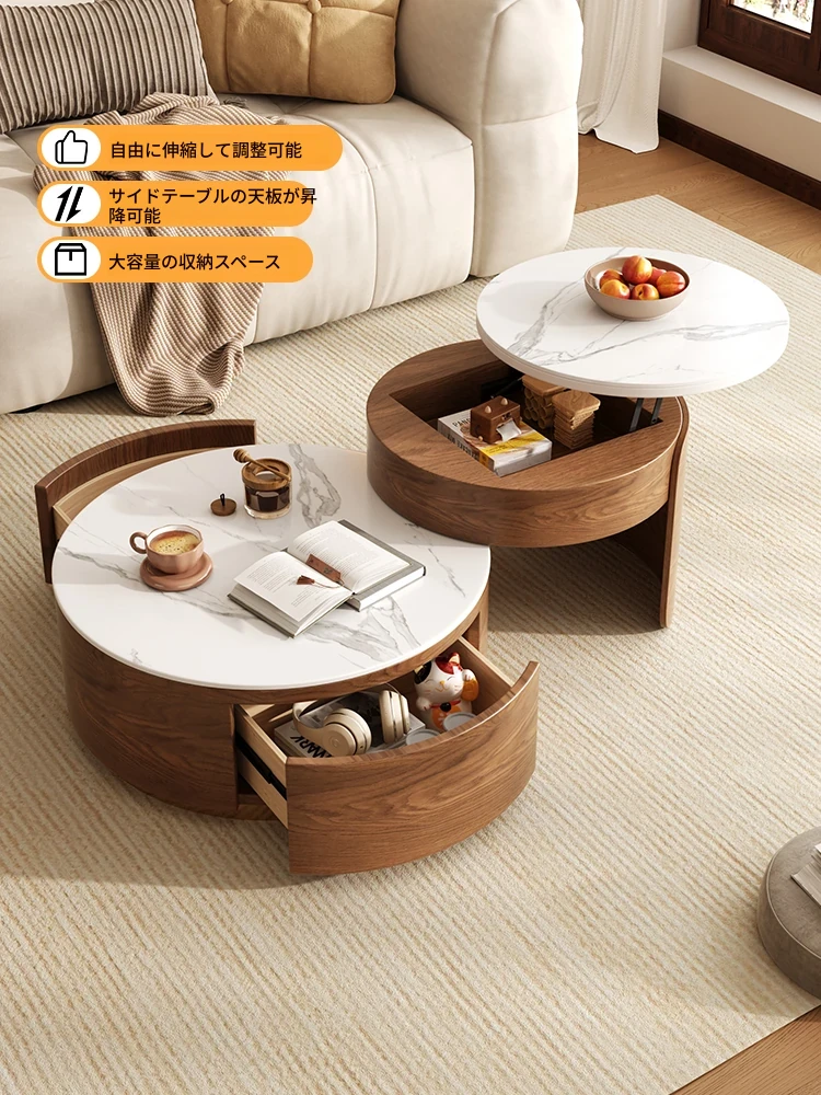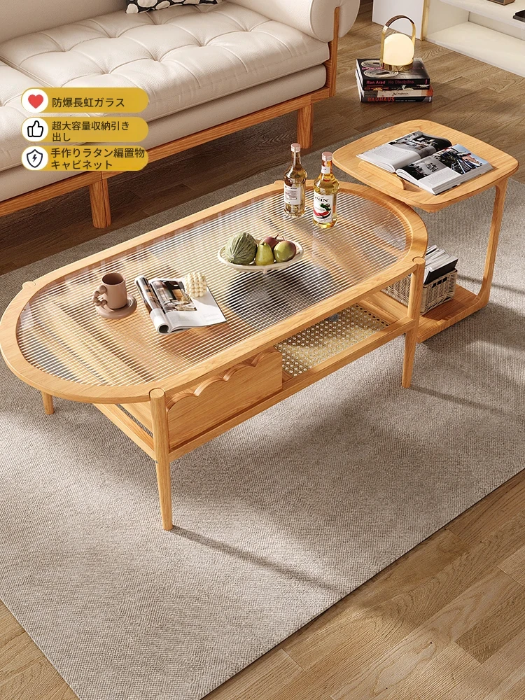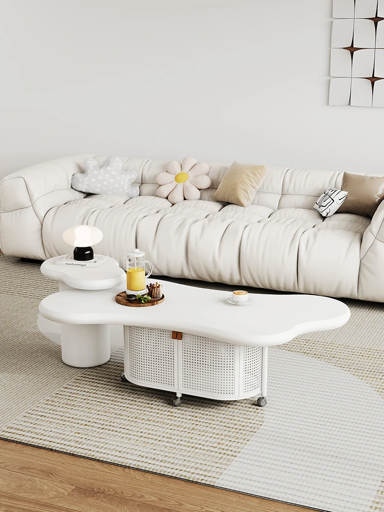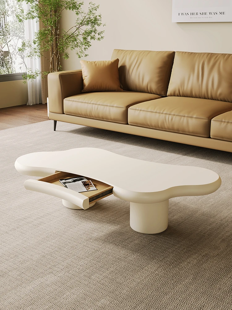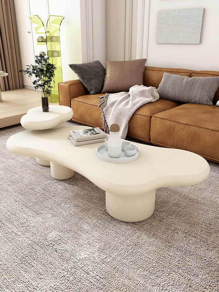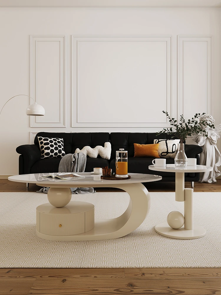 フレンチクリームスタイル💫エレガントなリビング用コーヒーテーブル✨コンパクトな家庭にぴったり!楕円形のホワイトテーブルで、イタリアンモダンな軽奢の魅力を演出🌟