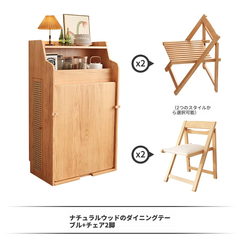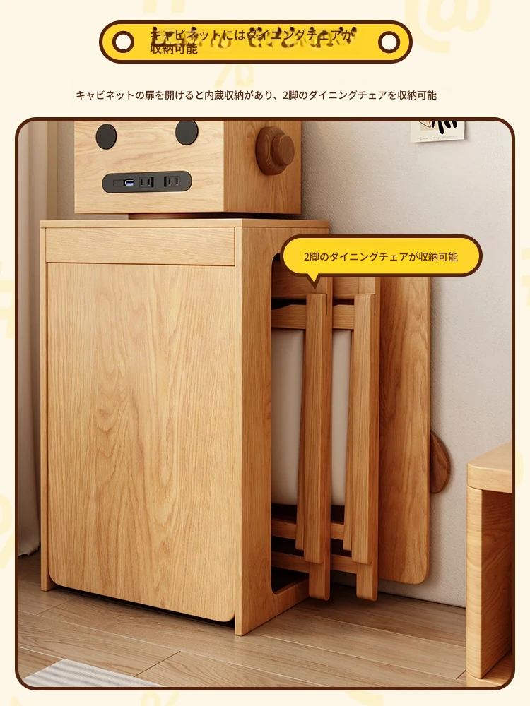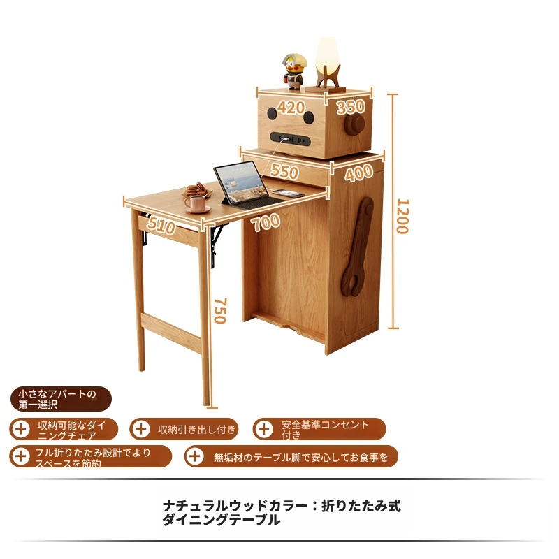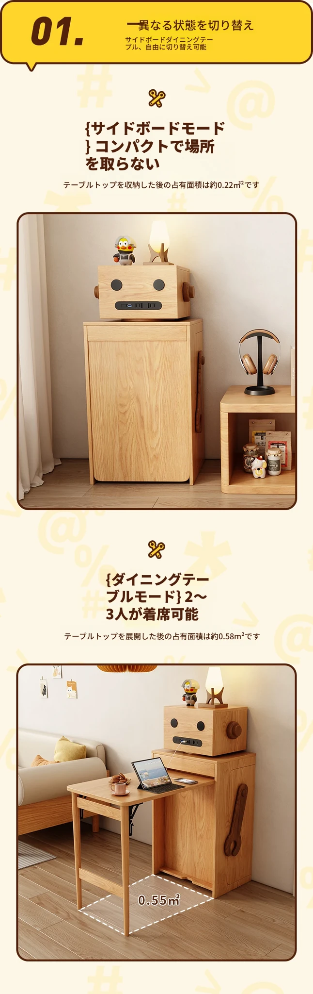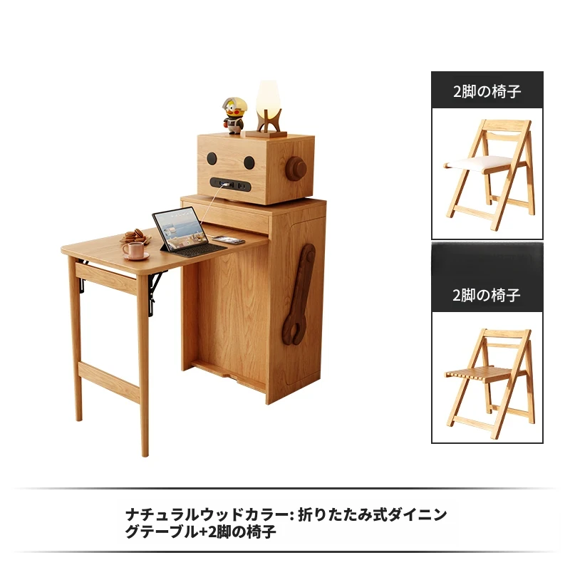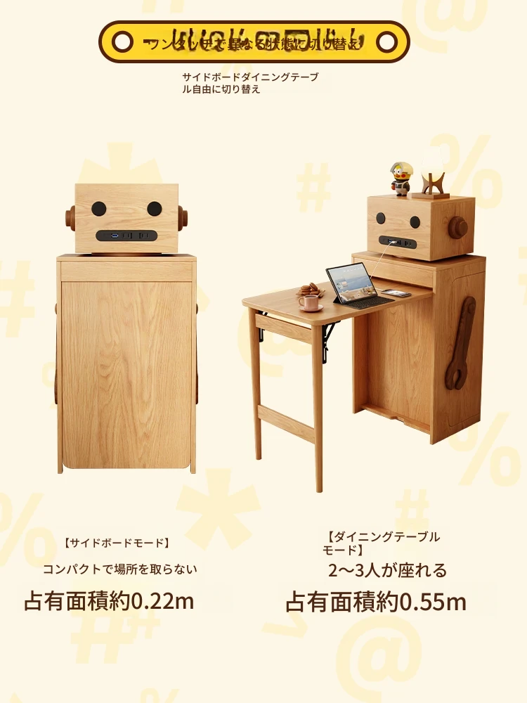 天然木目調デザインの伸縮ダイニングテーブルとキャビネット一体型、省スペースで使える多機能家具。小さなお部屋にもぴったり!折りたたみ可能で、収納力抜群、自由自在に変形して快適な生活空間を演出します。