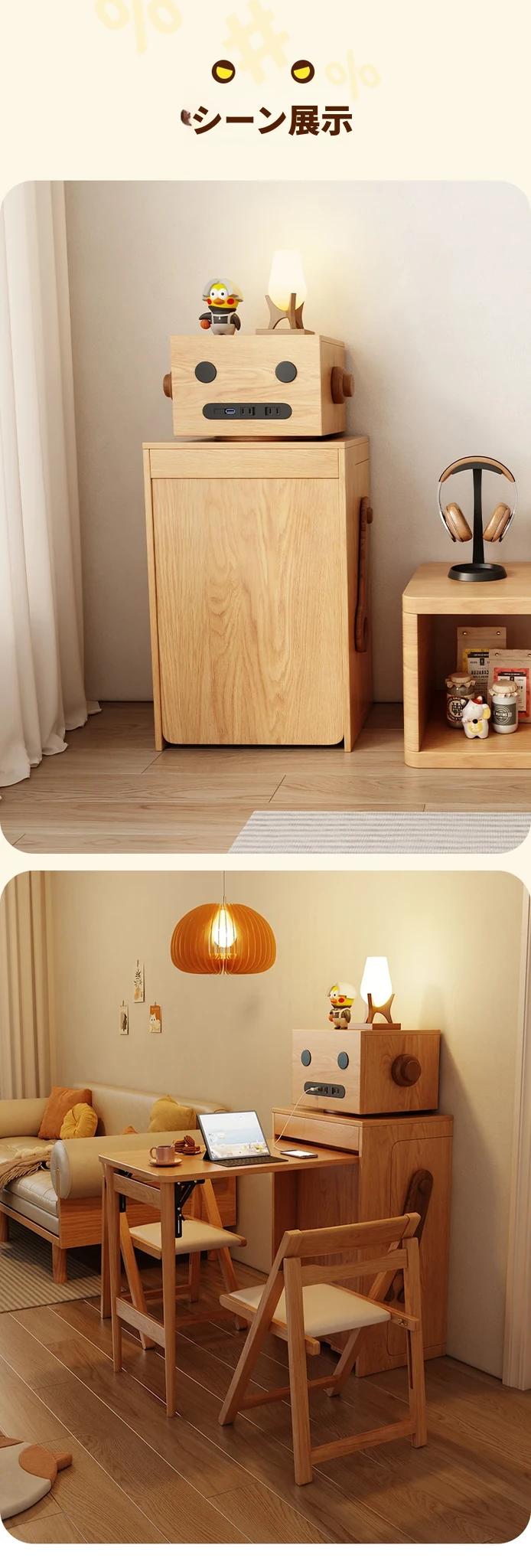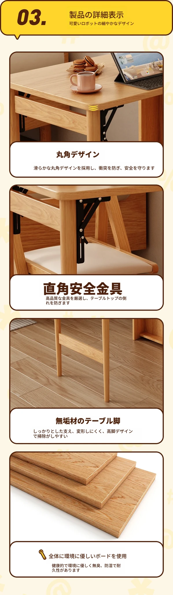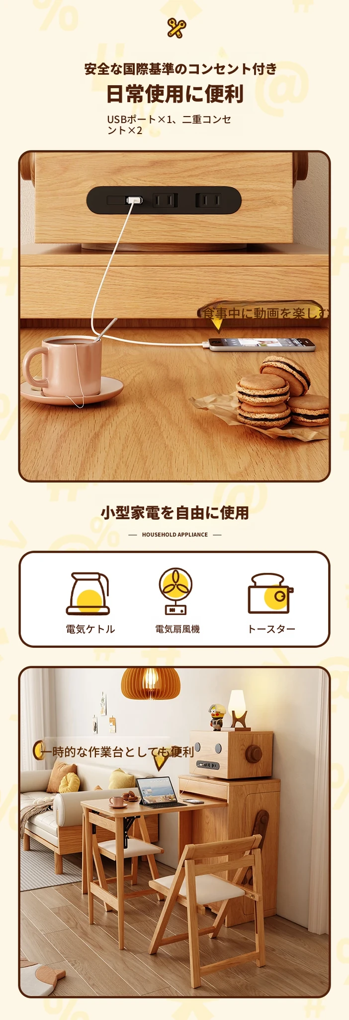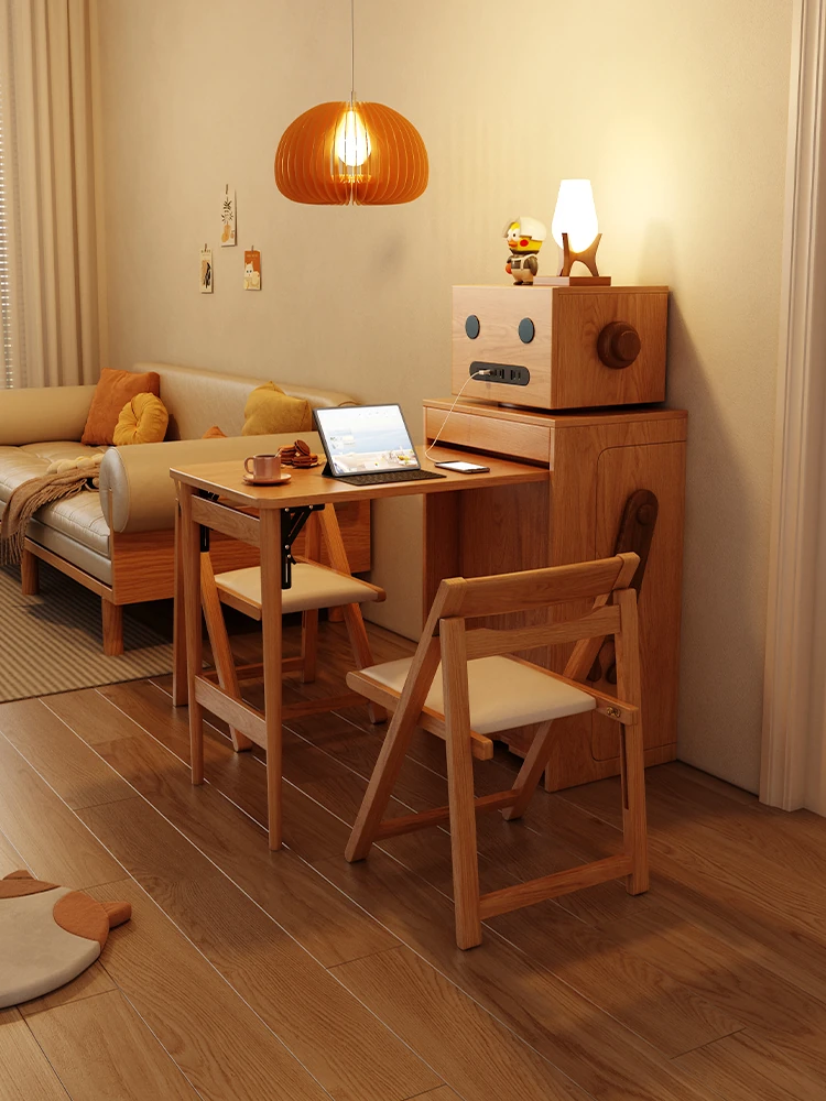 天然木目調デザインの伸縮ダイニングテーブルとキャビネット一体型、省スペースで使える多機能家具。小さなお部屋にもぴったり!折りたたみ可能で、収納力抜群、自由自在に変形して快適な生活空間を演出します。