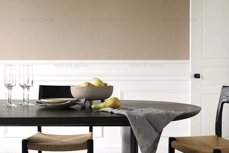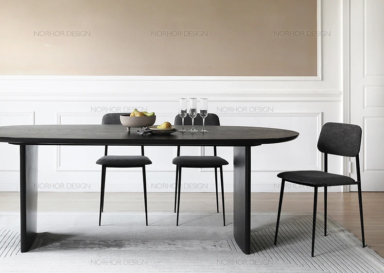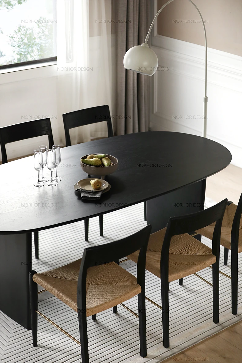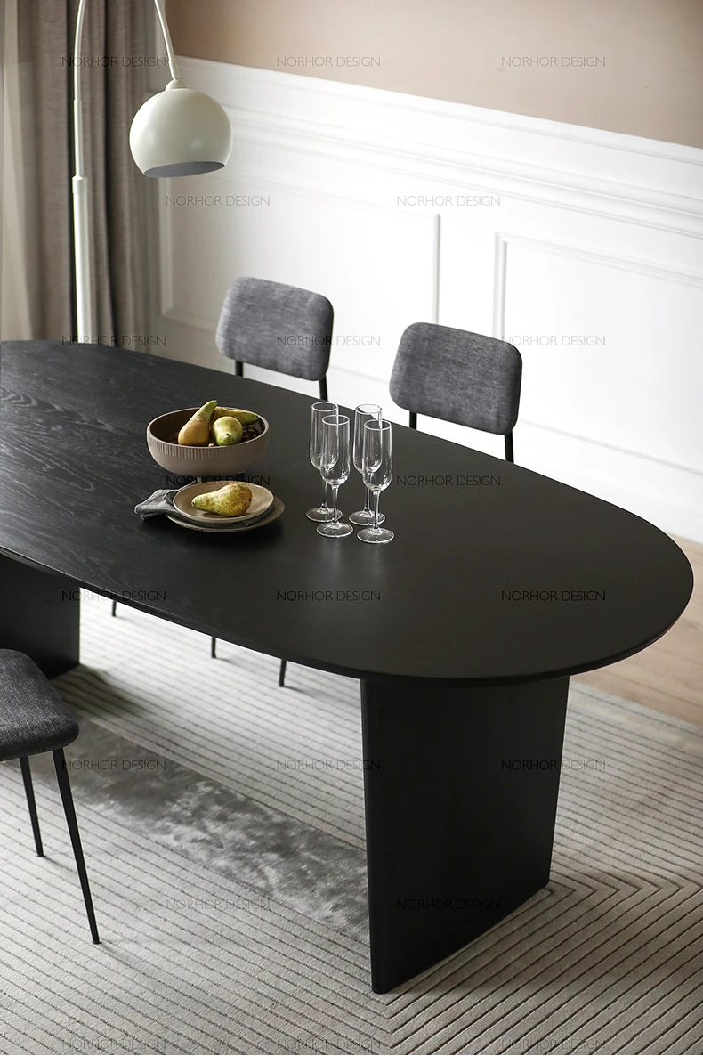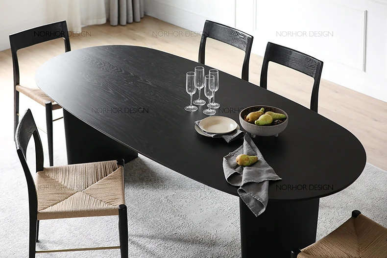 北欧スタイル無垢材アッシュウッド製楕円形ダイニングテーブル - 洗練された現代的デザイン、デザイナーによるシンプルで上質な書斎机とオフィス用会議テーブル