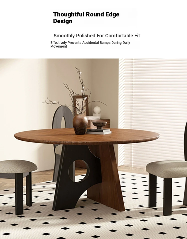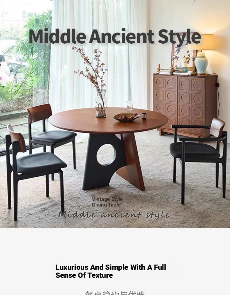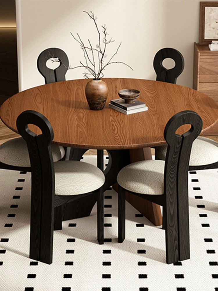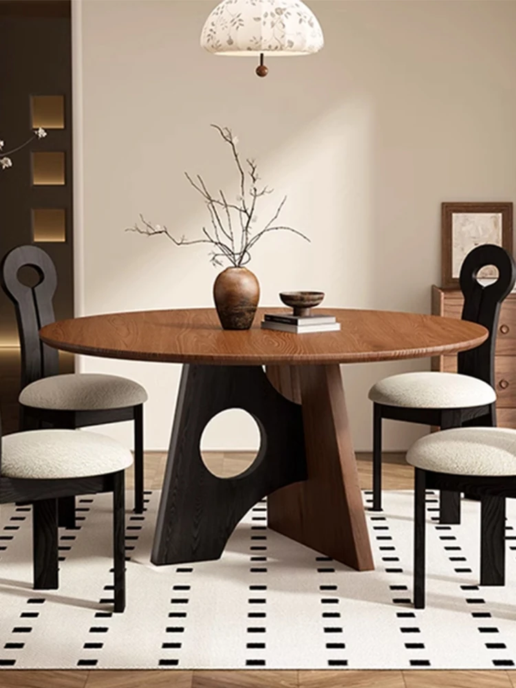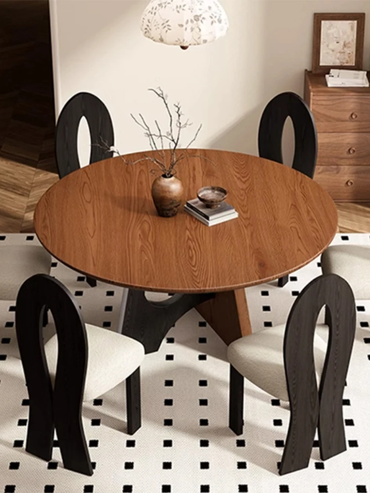 Nordic Solid Wood Round Dining Table Set - Vintage French Design for Small Spaces - Mid-Century Modern Aesthetic