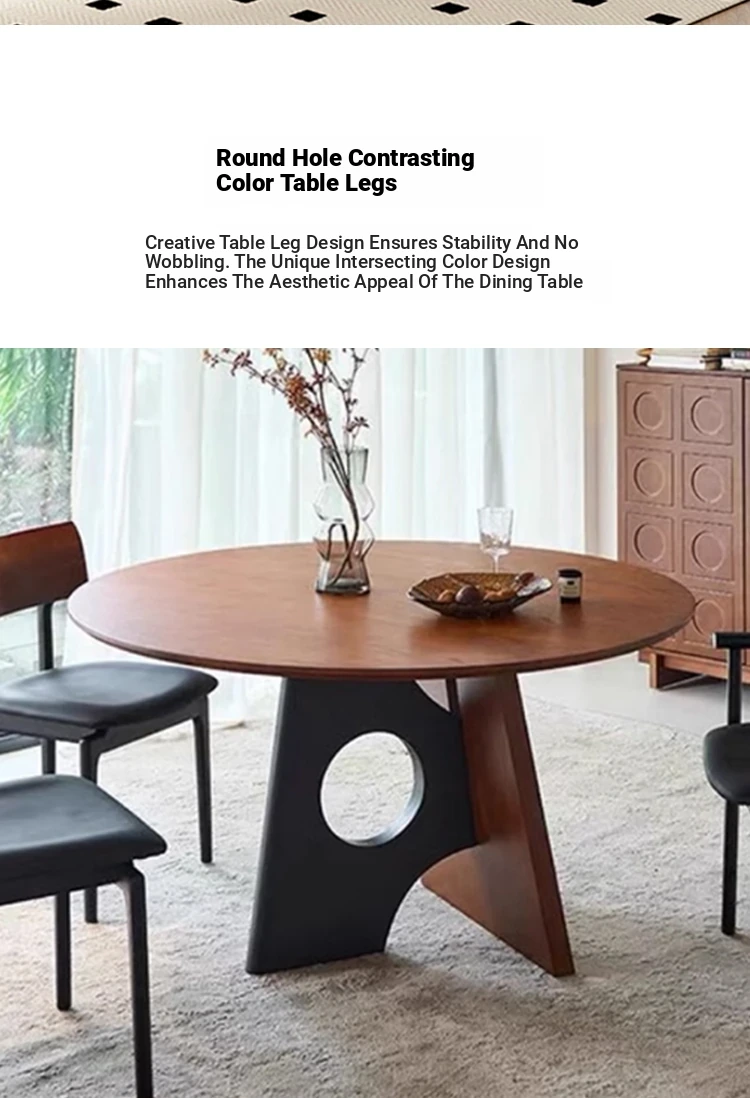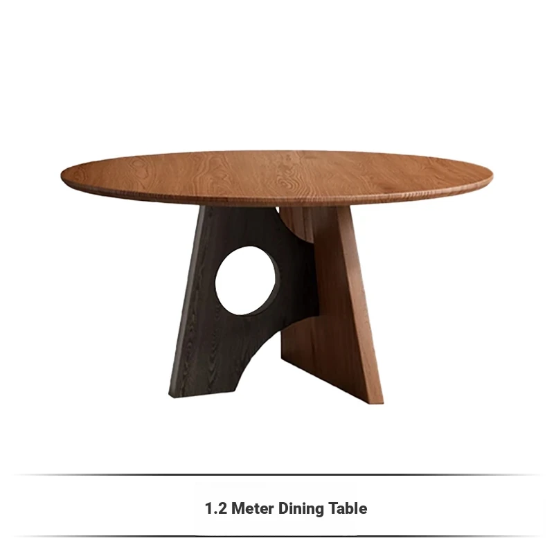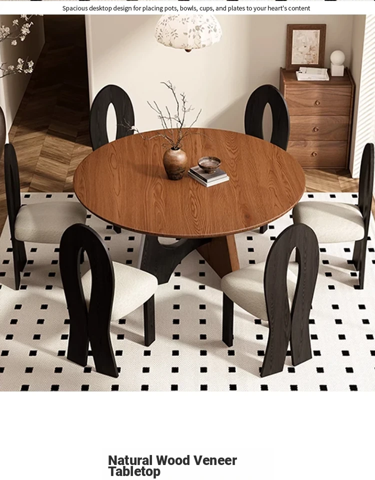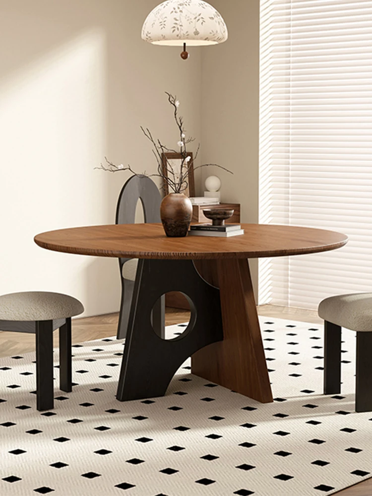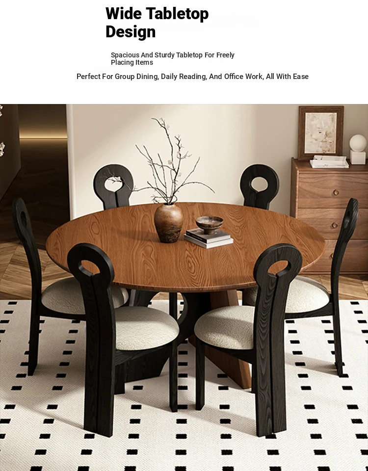 Nordic Solid Wood Round Dining Table Set - Vintage French Design for Small Spaces - Mid-Century Modern Aesthetic