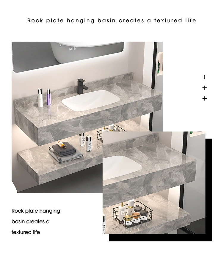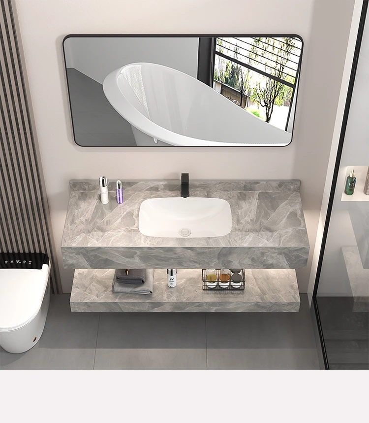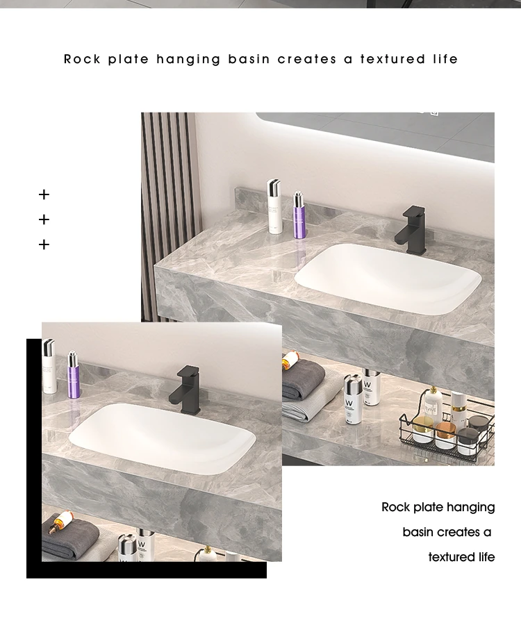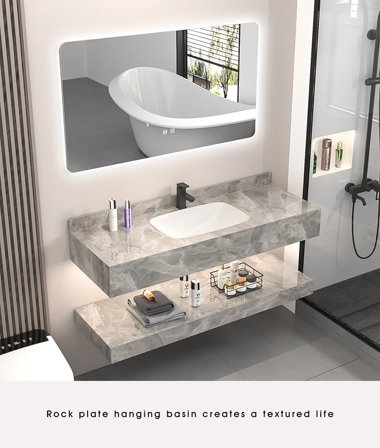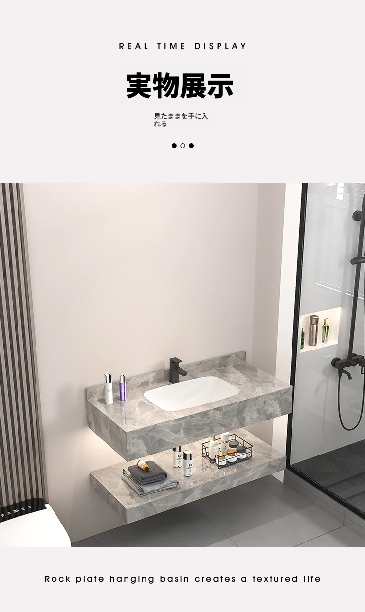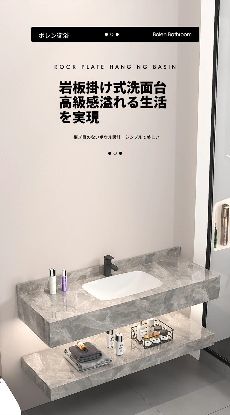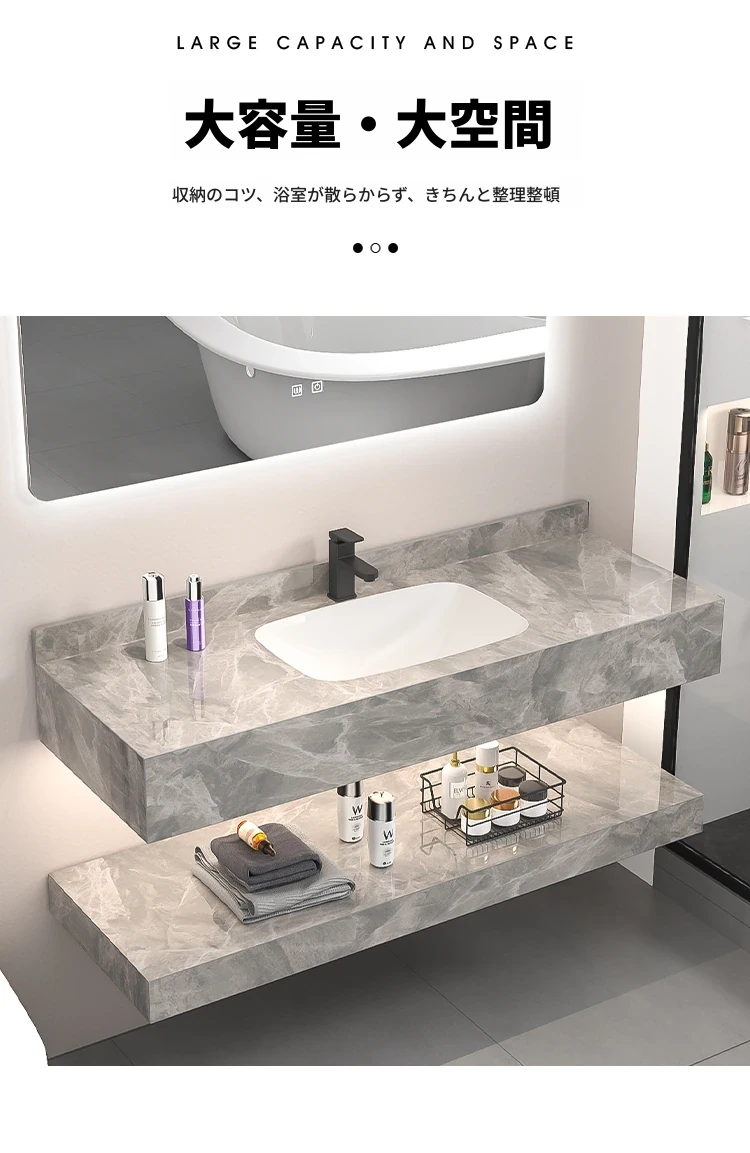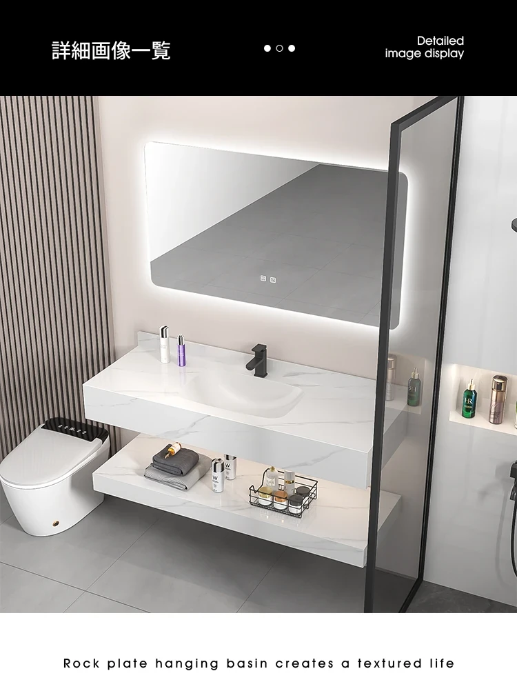 【魅力浴室】贅沢なダブルレイヤー!シームレスな洗面ボウル付き岩板バスキャビネット&高級陶器ミラーバスルームセットで至福のひとときをお届け