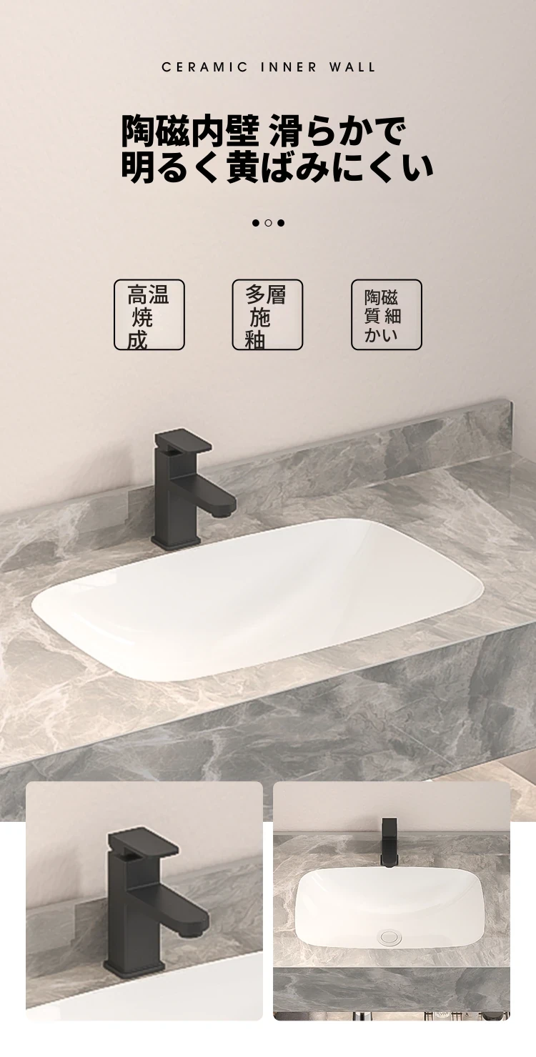 60ダブルレイヤーセラミック洗面台ブラック普通鏡セット