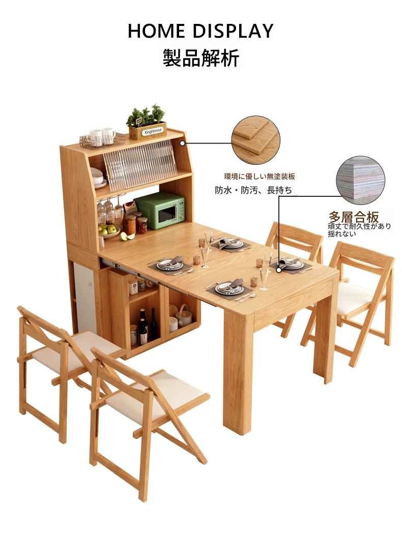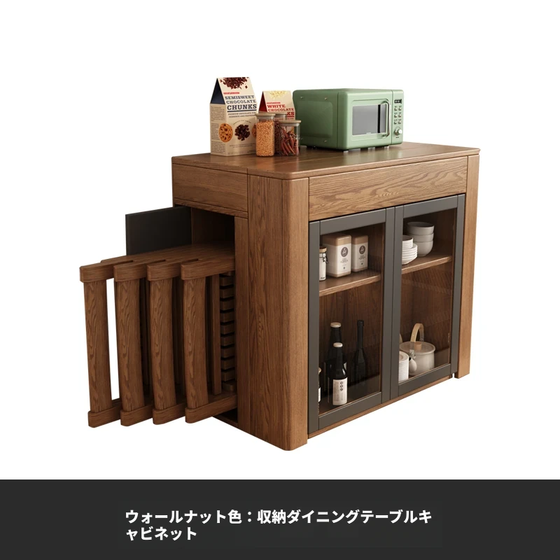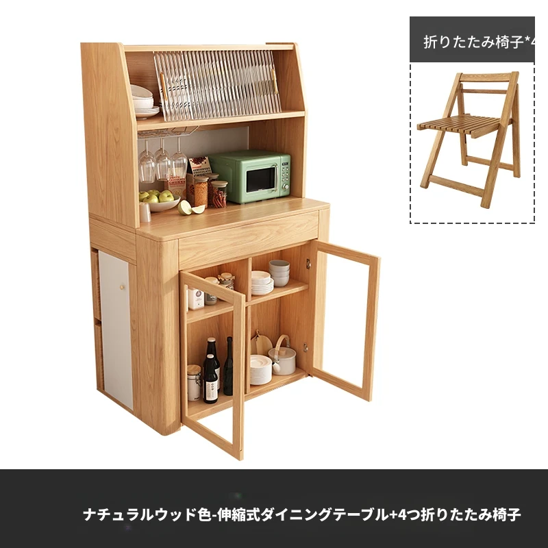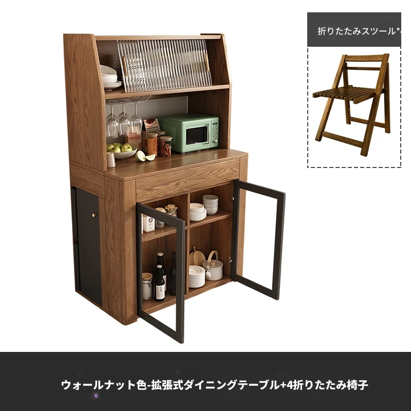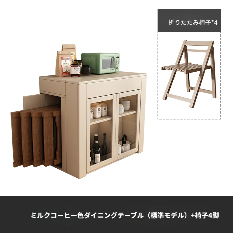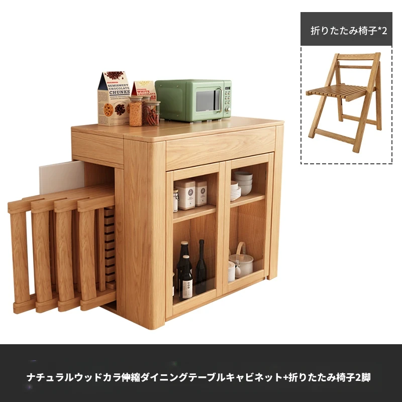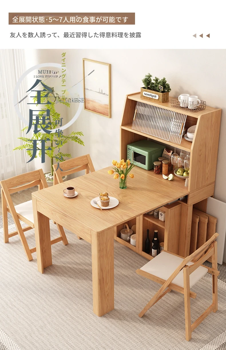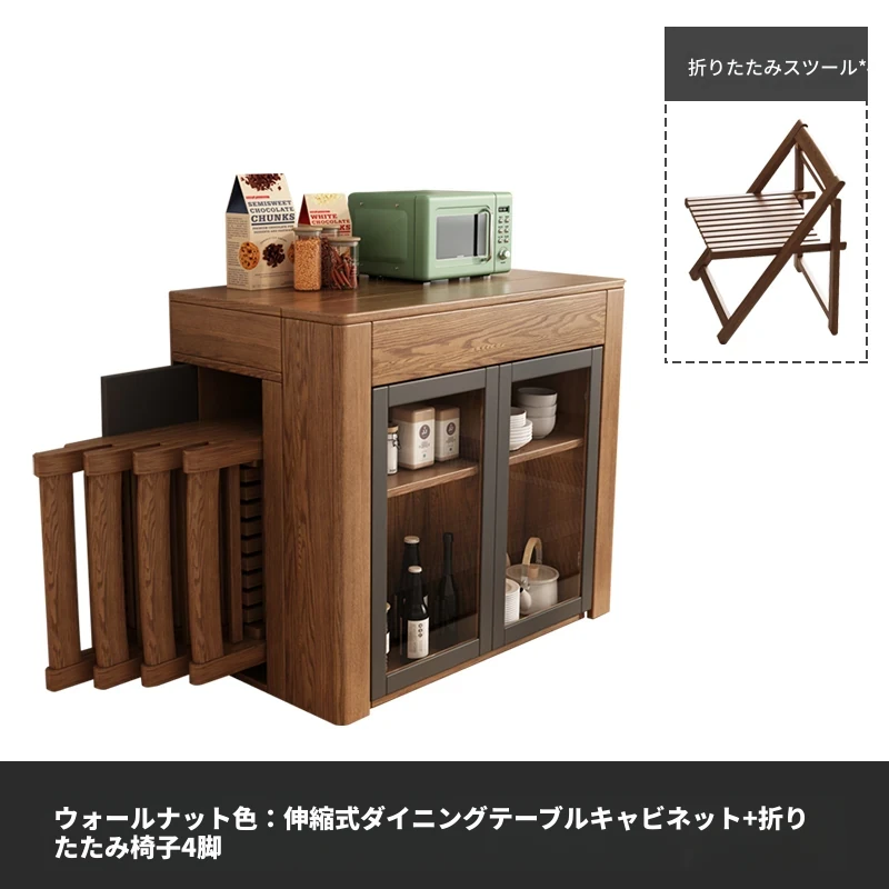 北欧風小型折りたたみダイニングテーブル- 多機能収納キャビネット付伸縮式セット!省スペースでおしゃれな食卓を実現!