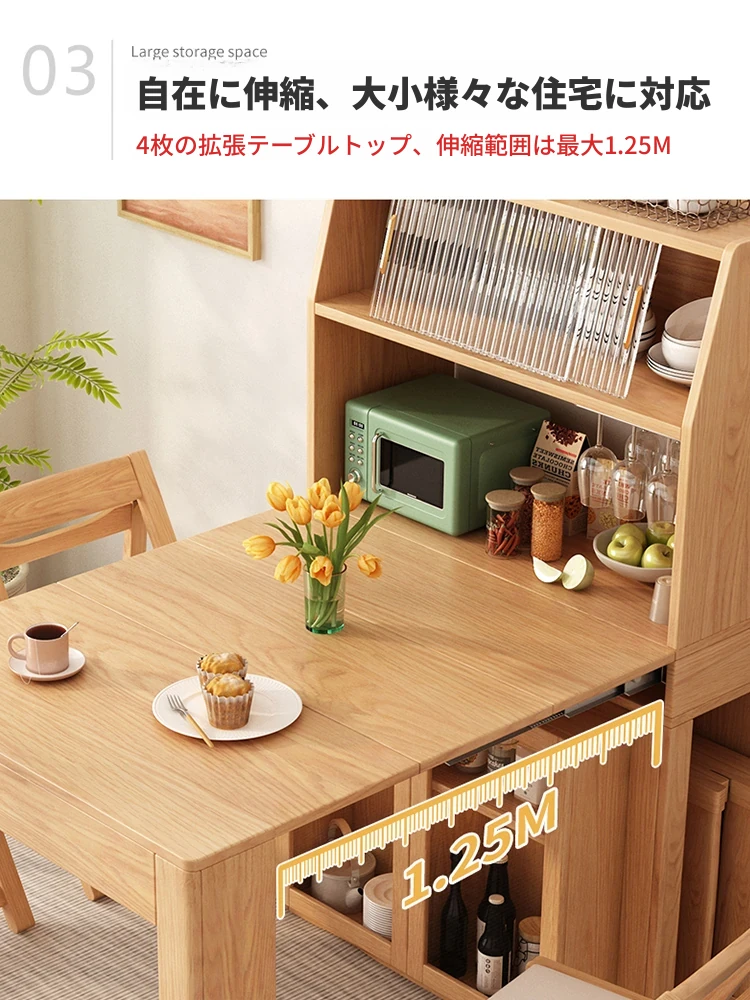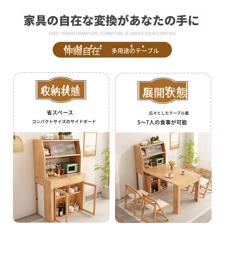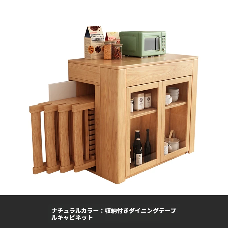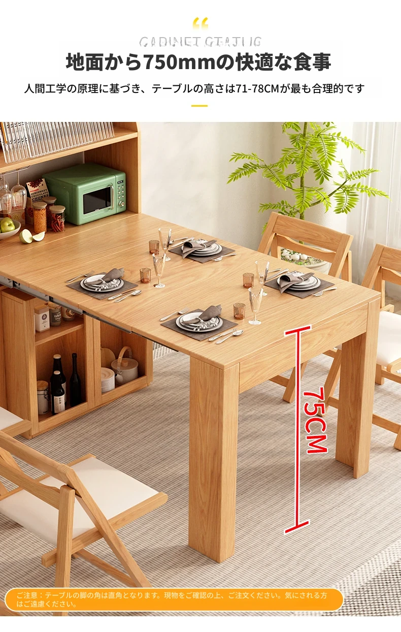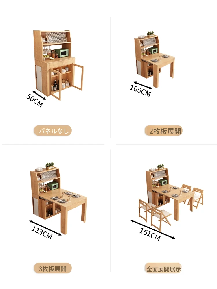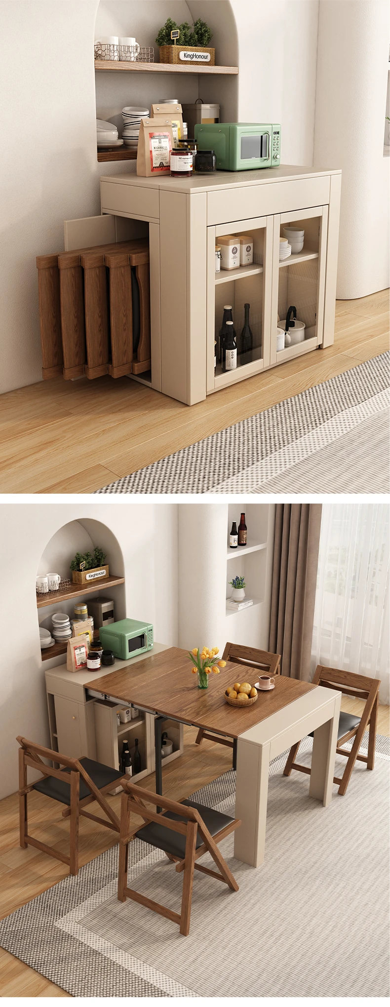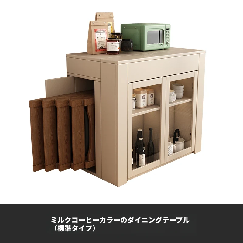 北欧風小型折りたたみダイニングテーブル- 多機能収納キャビネット付伸縮式セット!省スペースでおしゃれな食卓を実現!
