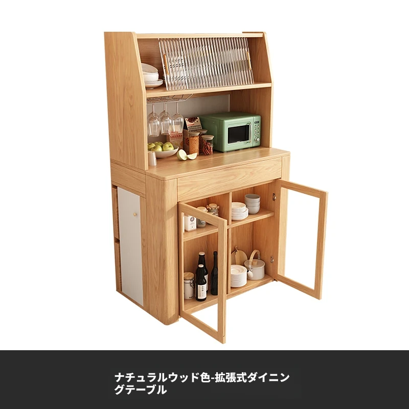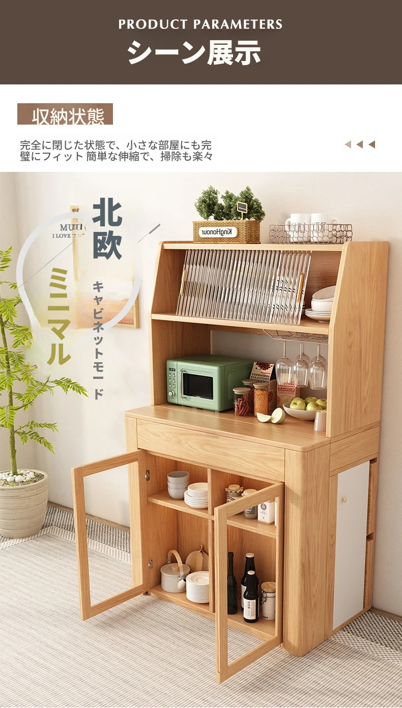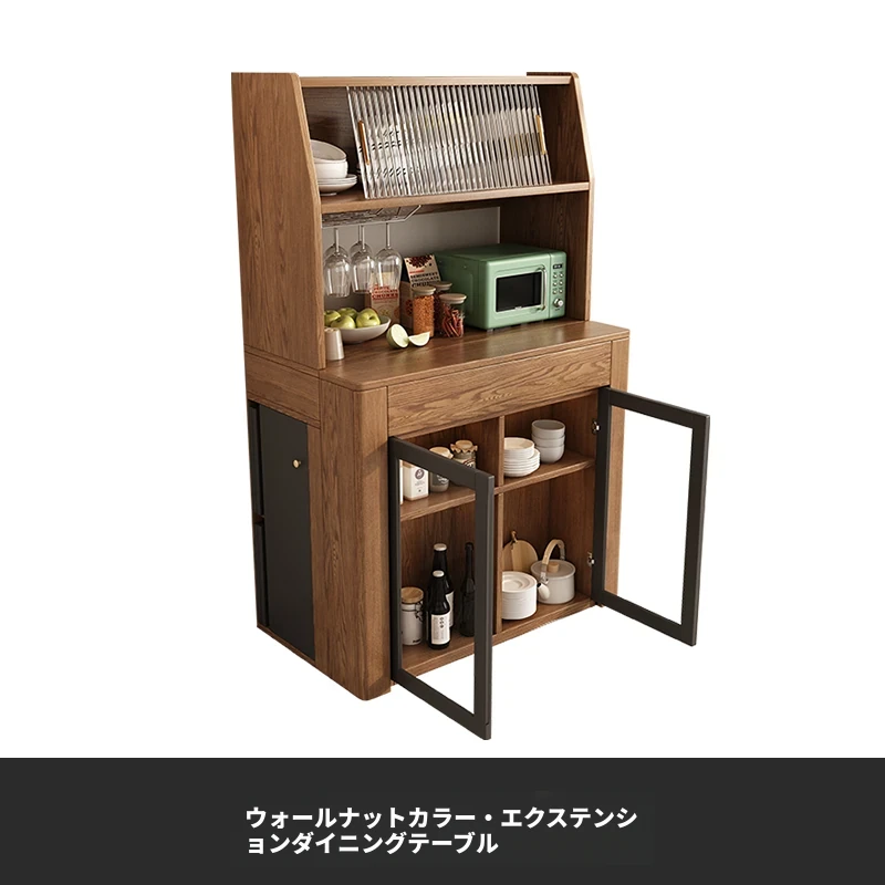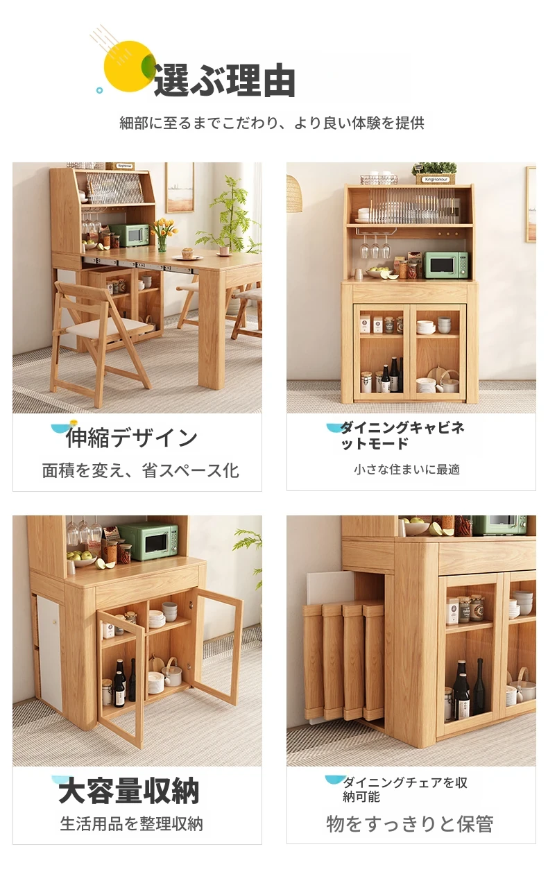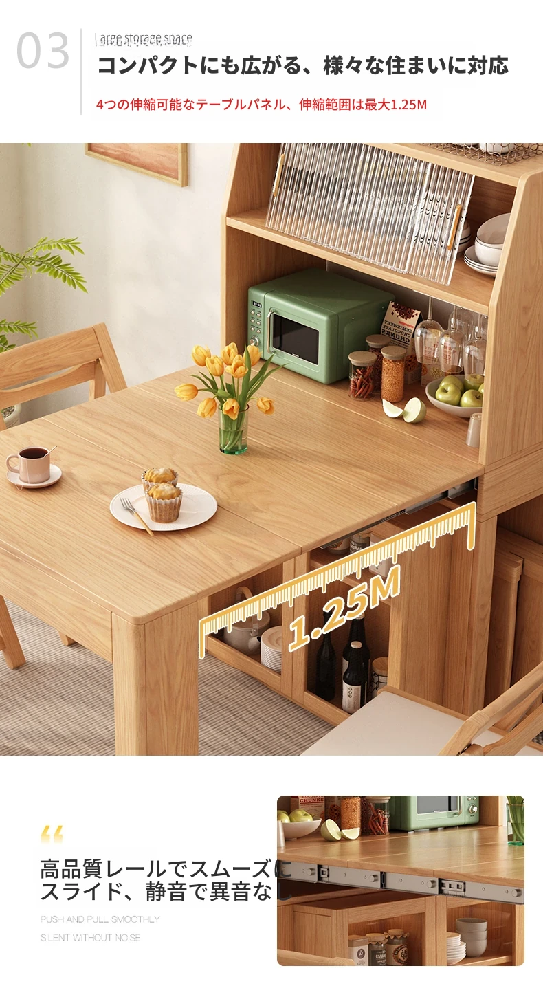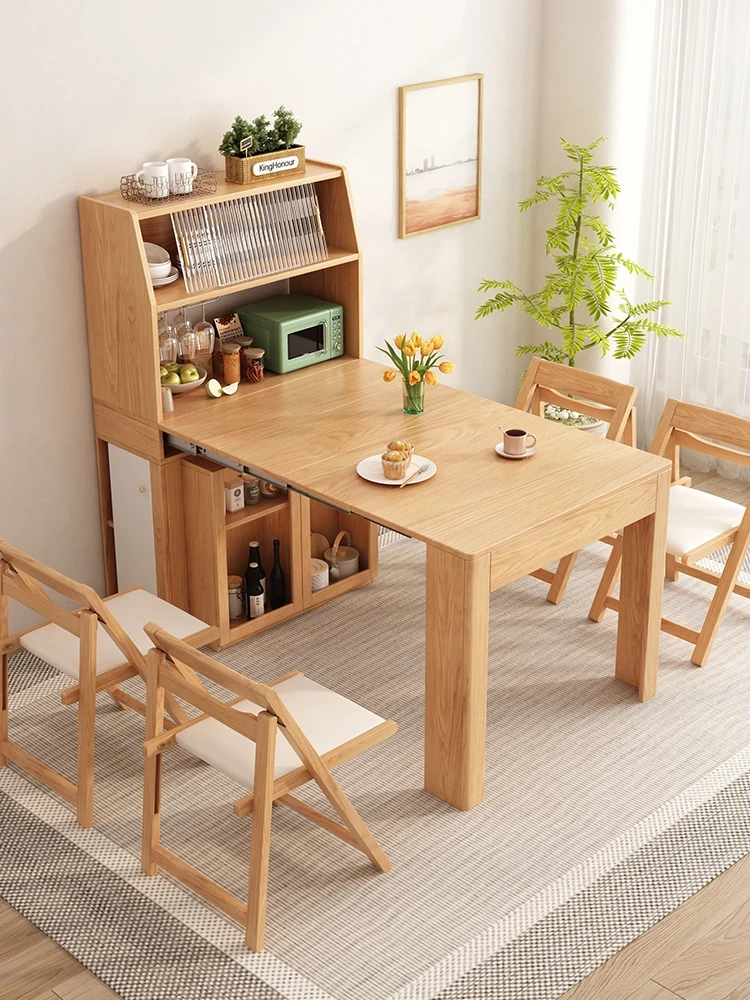 北欧風小型折りたたみダイニングテーブル- 多機能収納キャビネット付伸縮式セット!省スペースでおしゃれな食卓を実現!